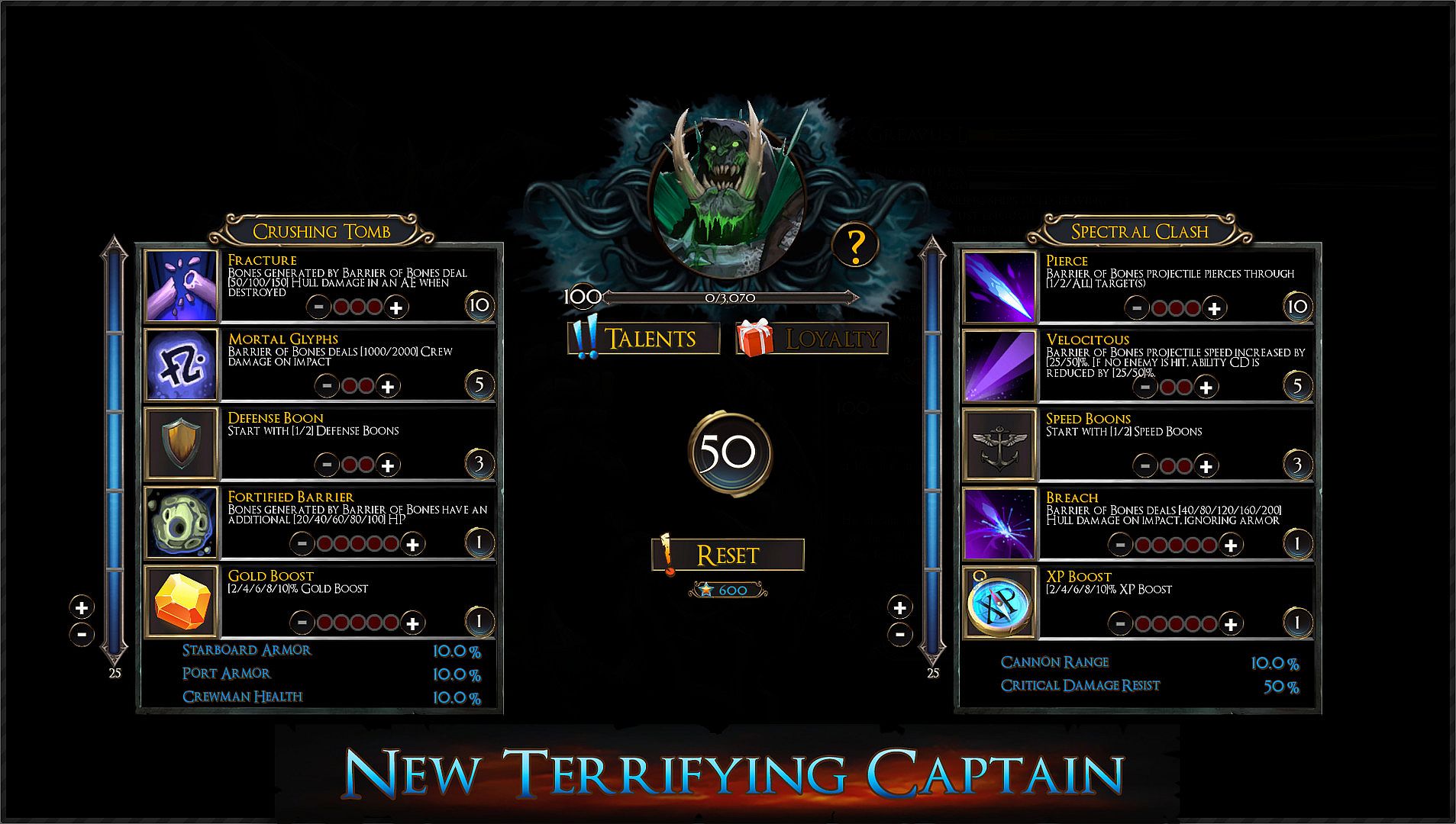 Soul Tempest: When sinking a ship, gain a slow moving ghost that sails around the ship. If the ghost collides with an enemy, they take damage.