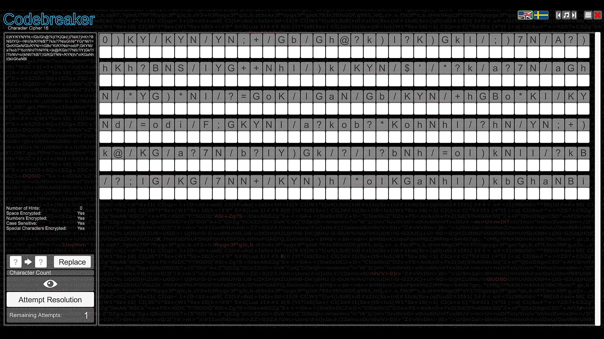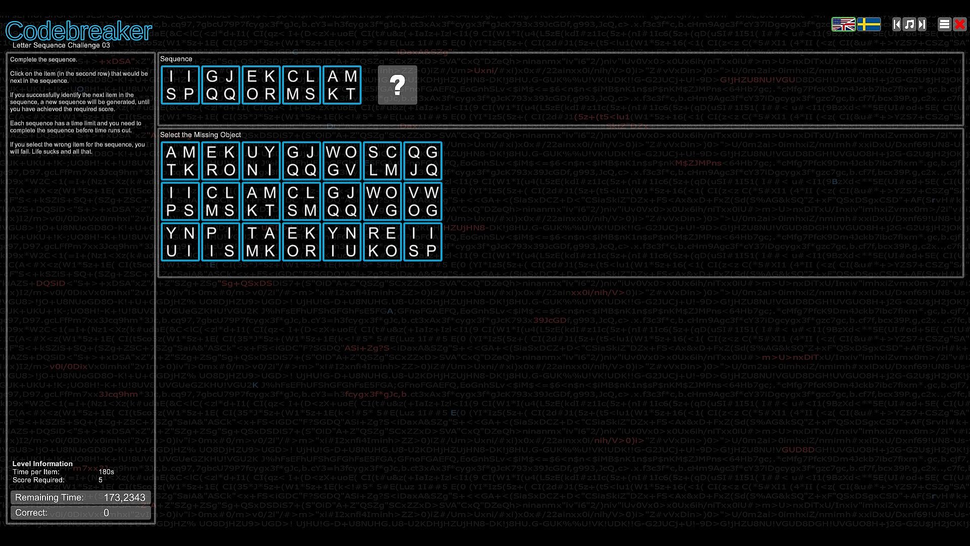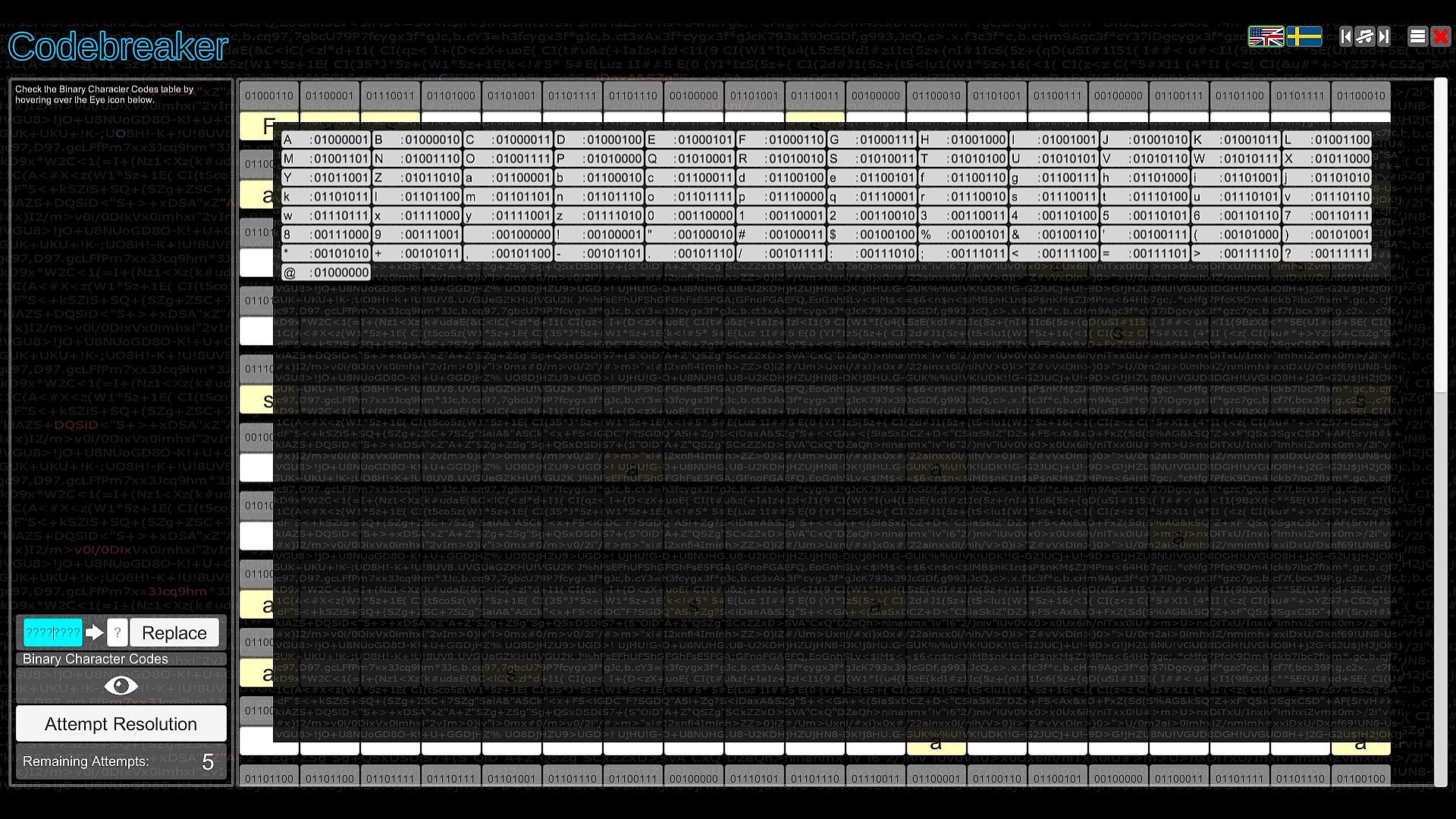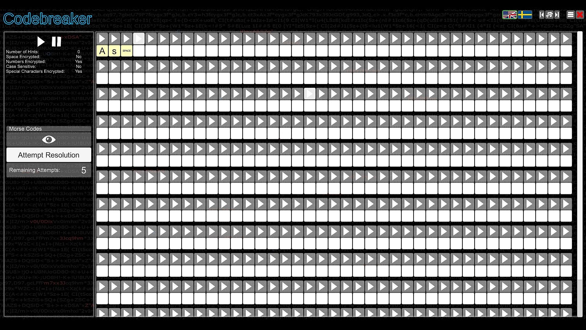 Test your intellect in Codebreaker, an indie casual puzzle game that challenges you to decode garbled texts by spotting switched characters, with hints to guide your start. Progress through the Character Substitution path and unlock others featuring Morse code translation, binary number representation, memory recall of strings with numbers, letters, or images, and sequence completion by identifying missing elements. Difficulty ramps up quickly across paths, demanding speed and coordination in select spots. This mind-bending experience suits analytical players who excel at pattern recognition and logic. Patience proves essential as challenges grow tougher, embodying the easy-to-learn, hard-to-master formula. Codebreakers with sharp deduction thrive here on PC.
