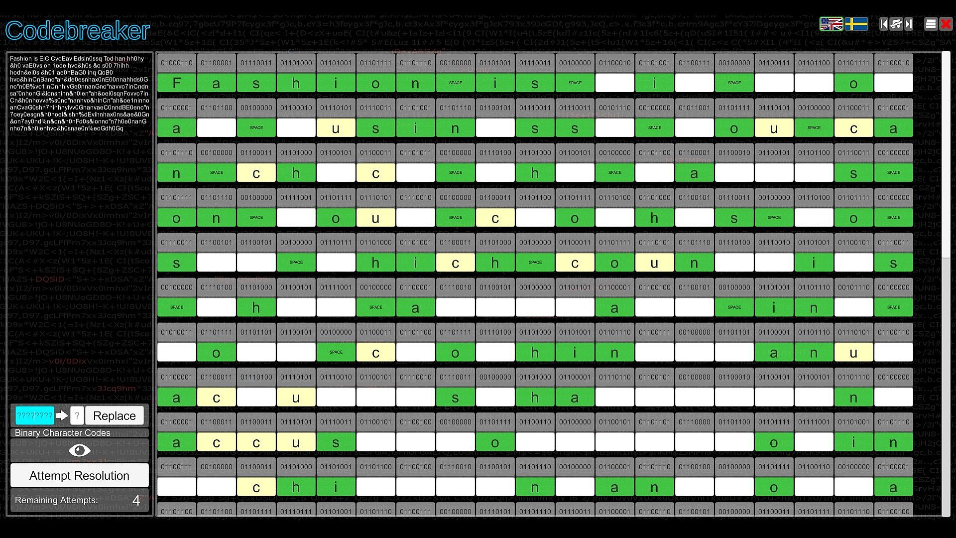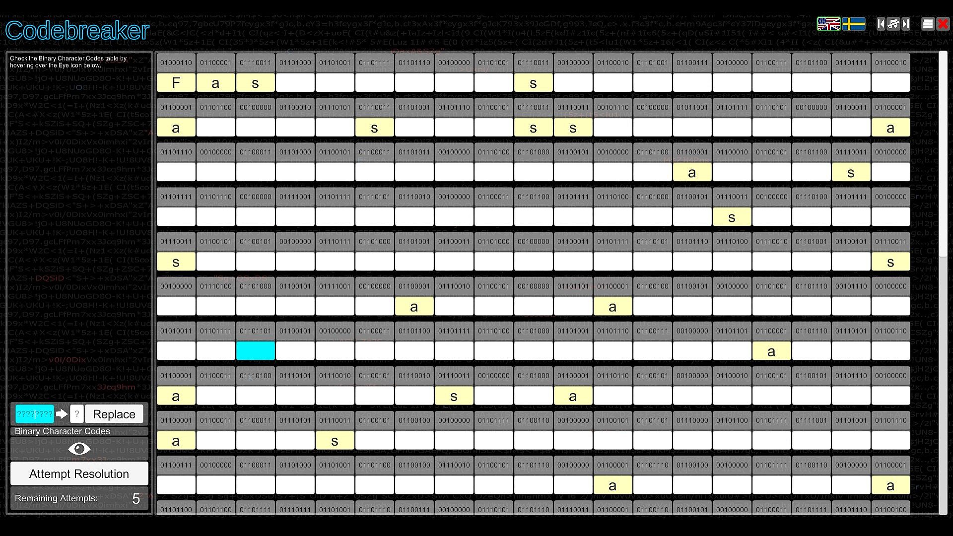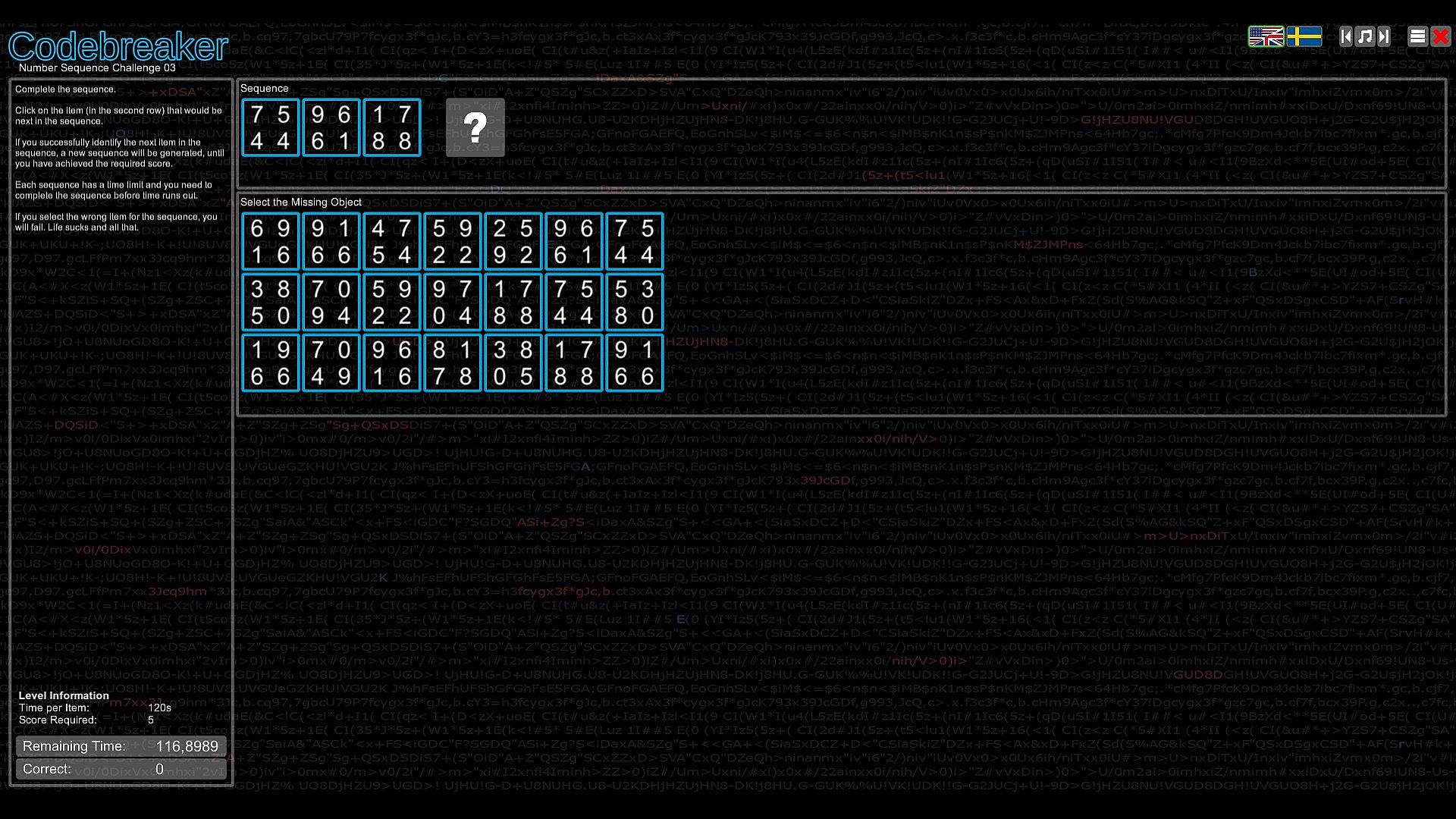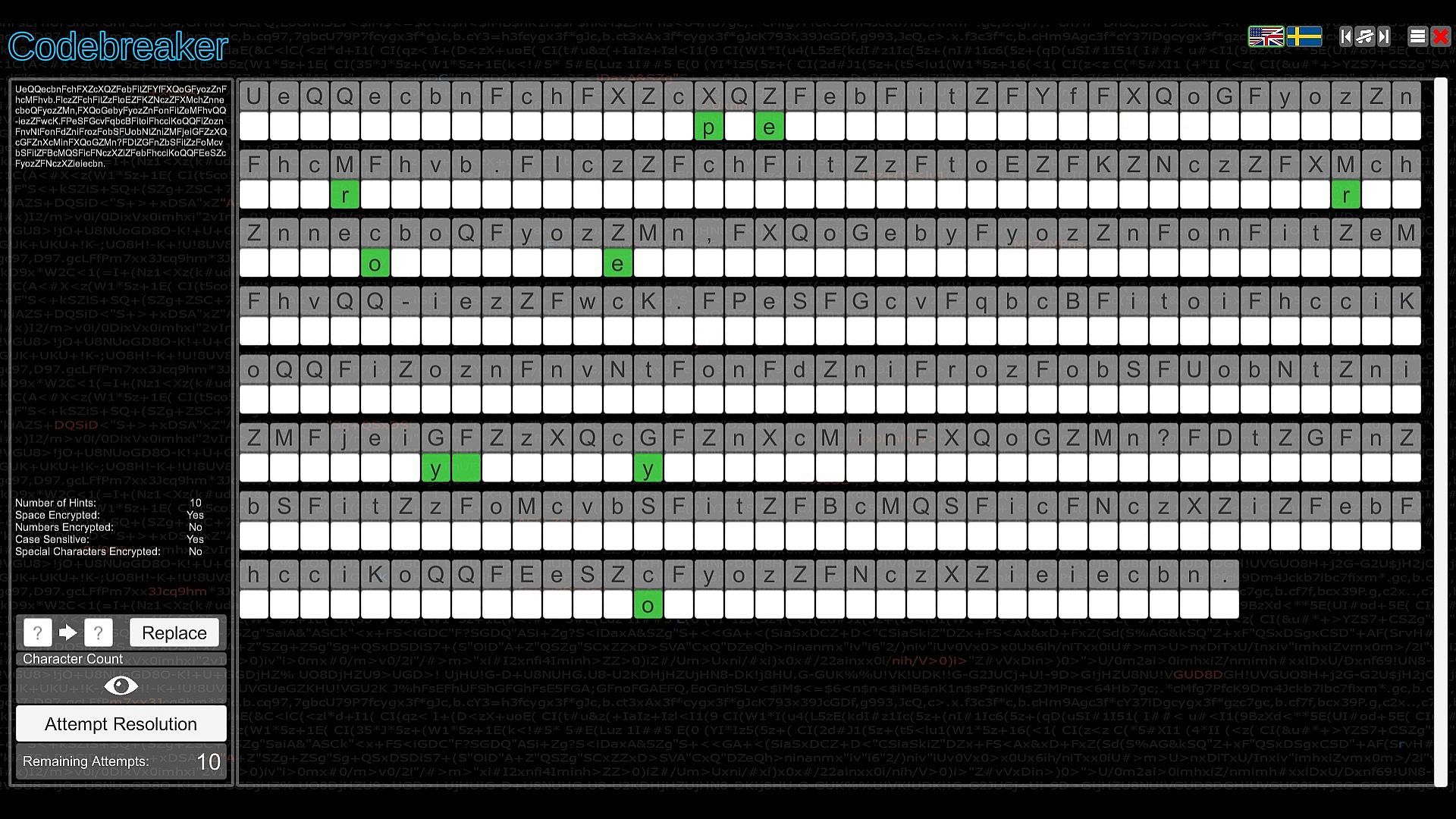 Test your intellect in Codebreaker, an indie casual puzzle game that challenges you to decode garbled texts by spotting switched characters, with hints to guide your start. Progress through the Character Substitution path and unlock others featuring Morse code translation, binary number representation, memory recall of strings with numbers, letters, or images, and sequence completion by identifying missing elements. Difficulty ramps up quickly across paths, demanding speed and coordination in select spots. This mind-bending experience suits analytical players who excel at pattern recognition and logic. Patience proves essential as challenges grow tougher, embodying the easy-to-learn, hard-to-master formula. Codebreakers with sharp deduction thrive here on PC.