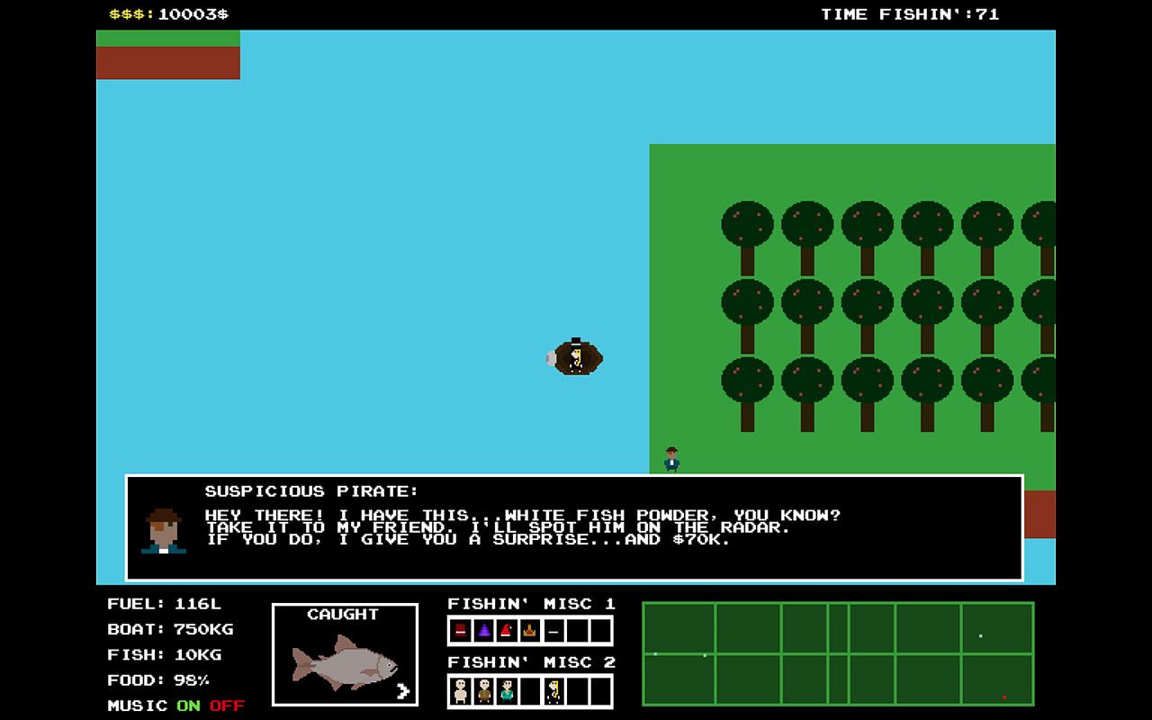 Welcome to Fishy Archipelago! Go fishing, catalog your most rare fishes and sea creatures, buy and find skins, hats, boats and properties. Build your fishy empire. The retro world is yours! Fisherman Classic is a retro top-down Adventure/RPG game about fishing, exploring an open world full of beautiful scenarios and building your empire of rare fishes, money, hats, skins, boats and real estate properties.