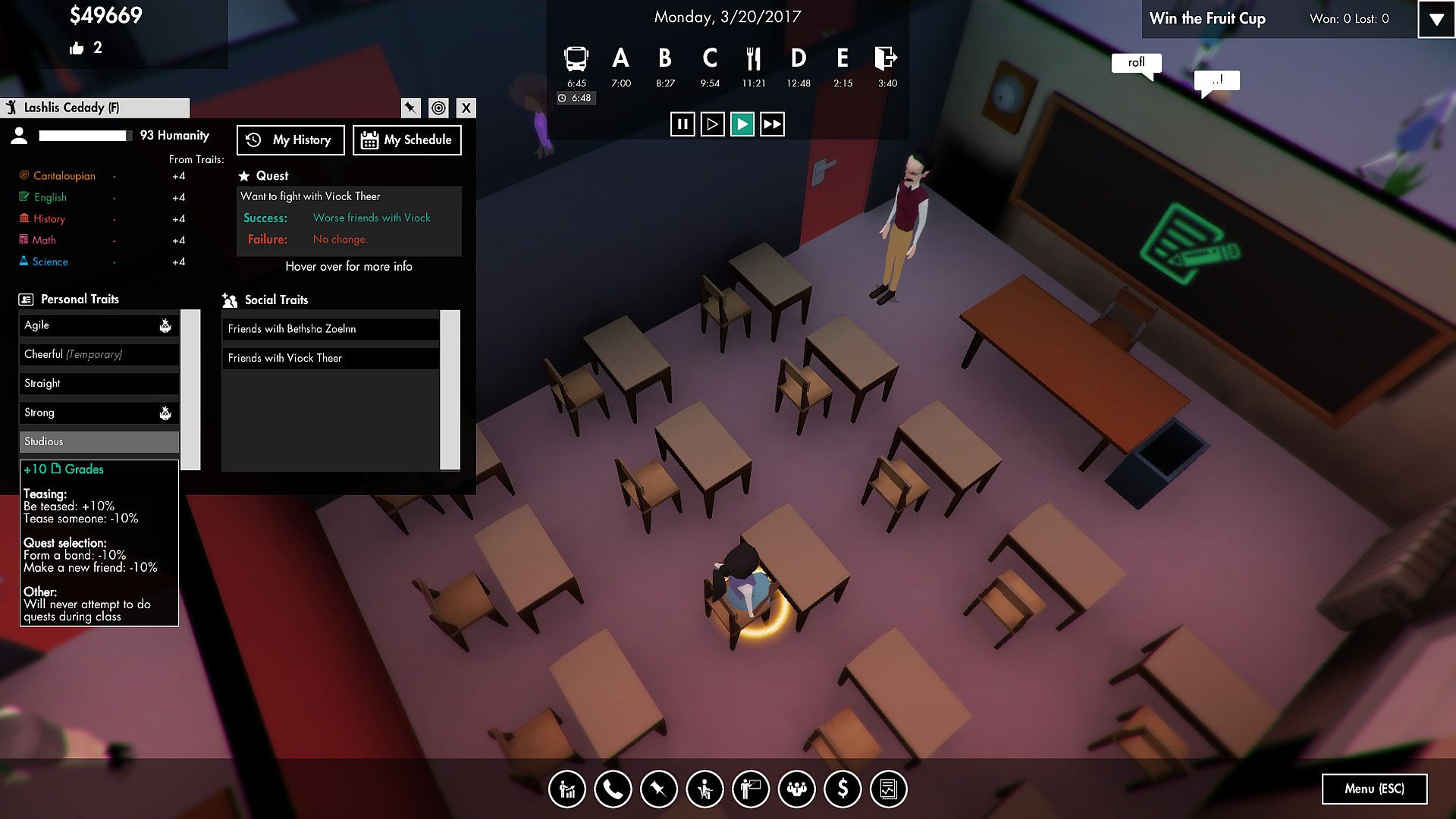 In No Pineapple Left Behind, you have to run a school full of children. Children have lots of wants, needs, and feelings. That's a problem, because if they get don't pay attention in class and get low grades, your school loses money. However, you can turn children into pineapples. All that pineapples do is take tests and get grades. They do not have feelings and are not people, but they are much simpler to handle, and therefore much cheaper.