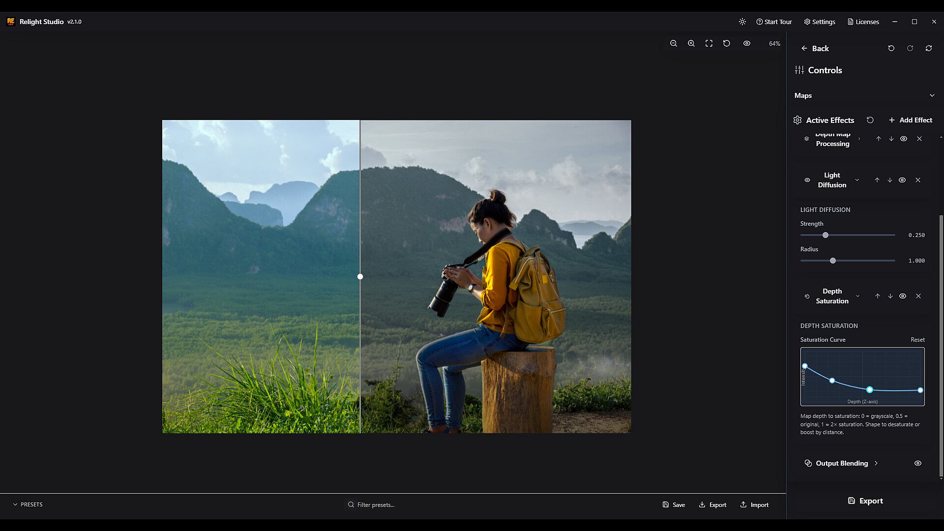 • Depth Saturation, Depth Exposure, Depth Vignette and more