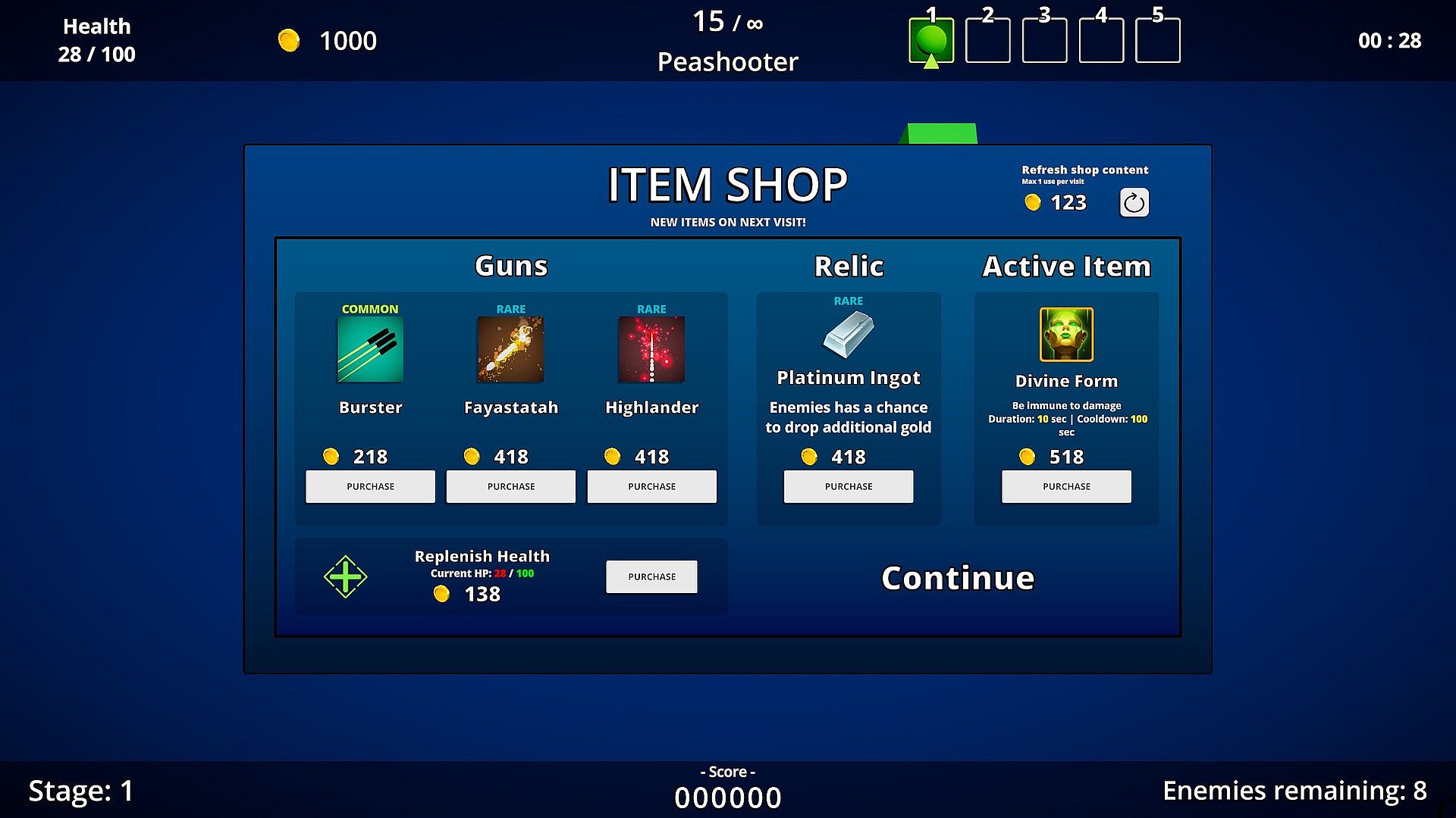 Buy items with the gold you've collected to get stronger and a better chance of fighting increasingly difficult enemies and stages.
