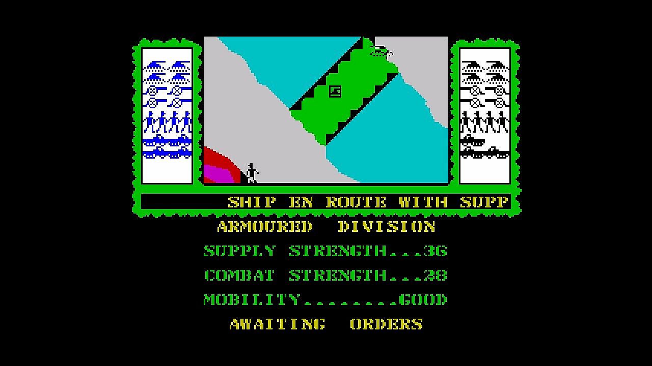 Face off in a skirmish between equal forces over varied terrain. Select a unit to view its statistics and issue move orders. Units will automatically engage when in range. Use supply units to supply your frontline units. New supplies will continually arrive via ship.