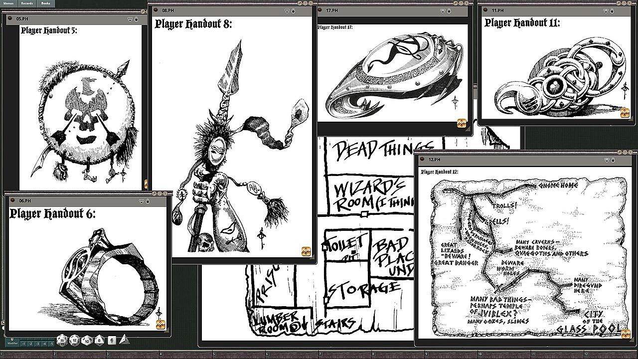 • 16 Player Handout sheets featuring art, maps, charts, and letters.