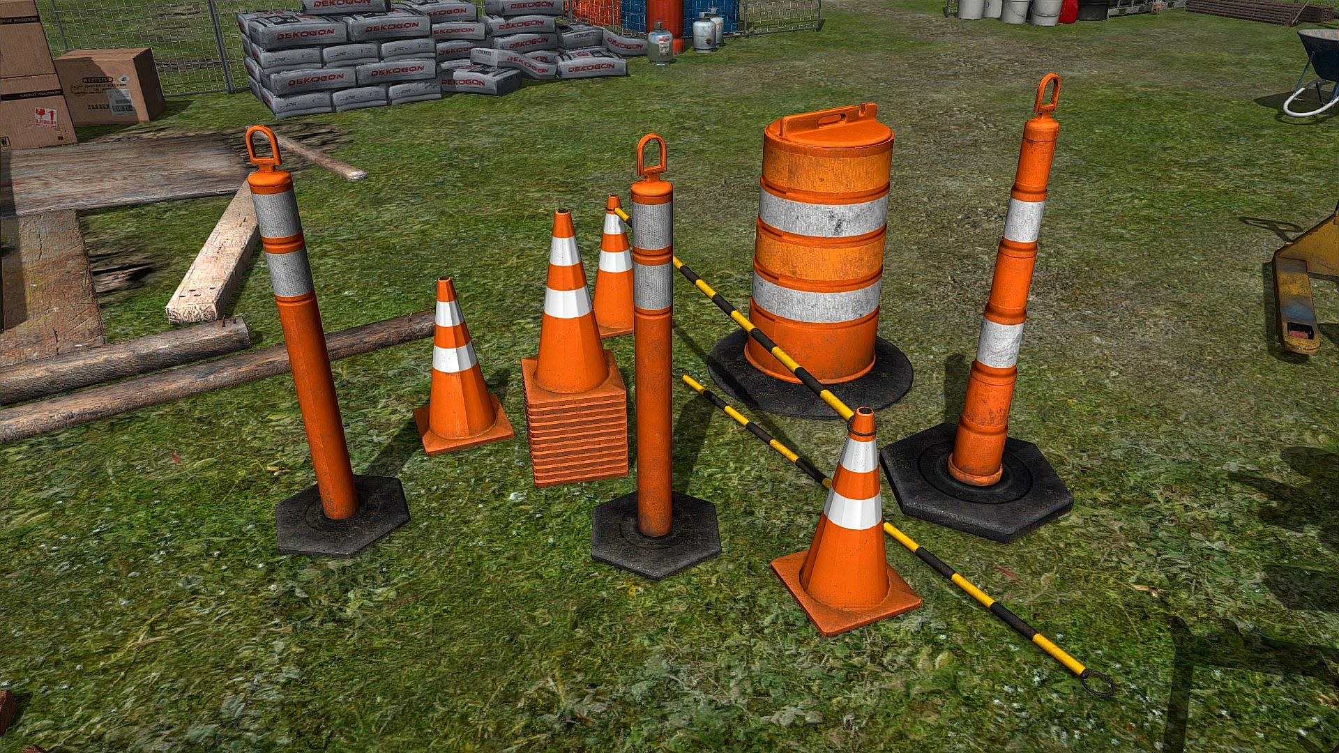 Prepare yourself for a high-quality PBR collection of props to populate the construction yards, building sites, workshops and sheds of your next game. This DLC is crammed with 96 items that you might typically find on a site under construction, ranging from large industrial supplies to smaller tools you might find in your shed: