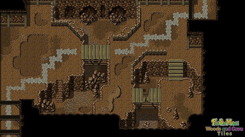 FSM: Woods and Cave Tiles includes a selection of forest, cavern and mine tilesets - perfect for creating a variety of dungeons for your players to expore. This large and versatile set will allow you to create new areas with ease, while providing you with the tools to customize and improve your maps. A sample game, manual and guide are included, completed with mapping tips and tricks. Whether you're a beginner or seasoned veteran, FSM: Woods and Cave Tiles is a must-have in your RPG Maker resource library!