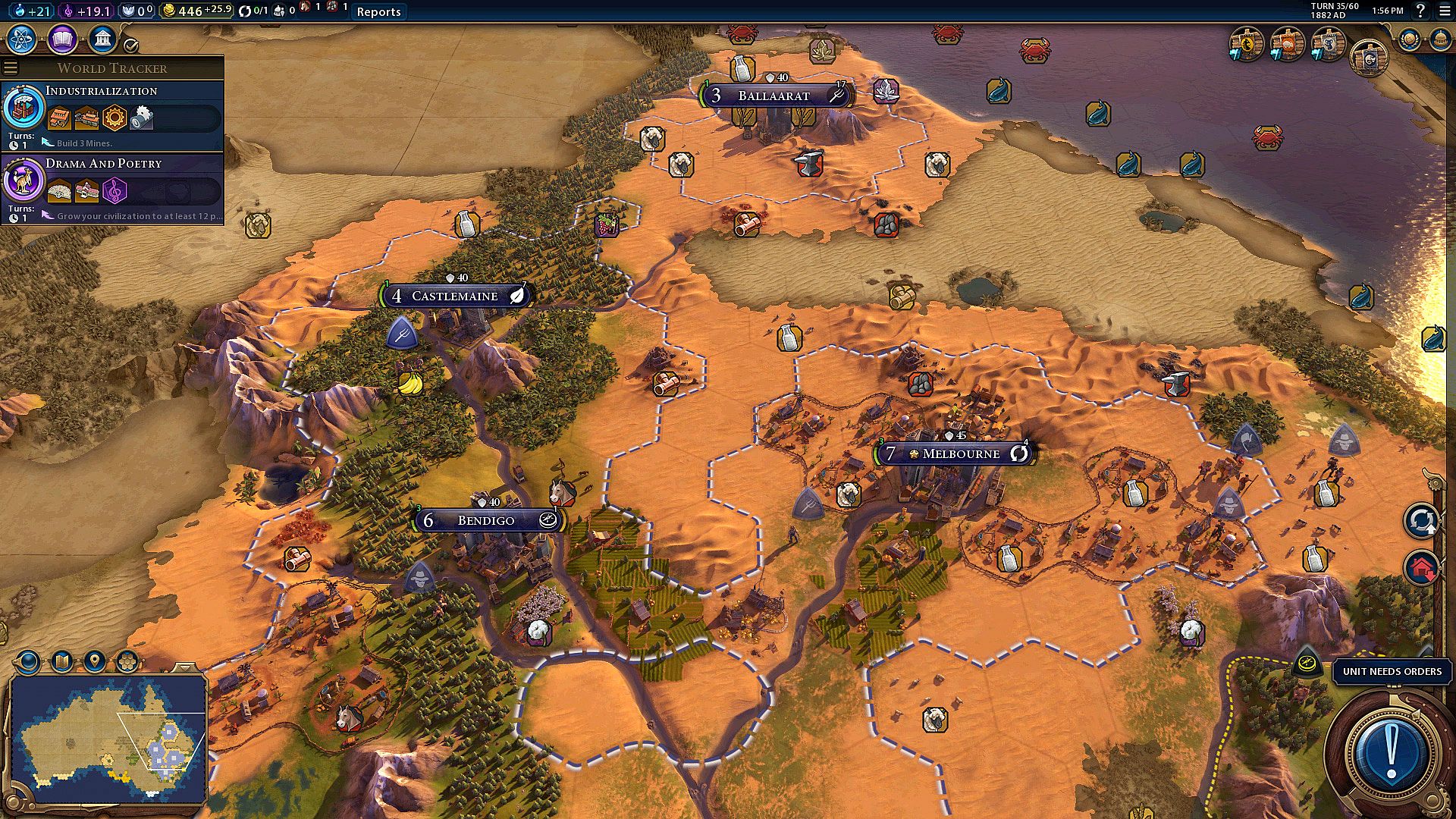 • Unique Unit: Australia’s unique unit is the Digger, which gets bonuses to combat on land tiles adjacent to water and when fighting outside their territory.