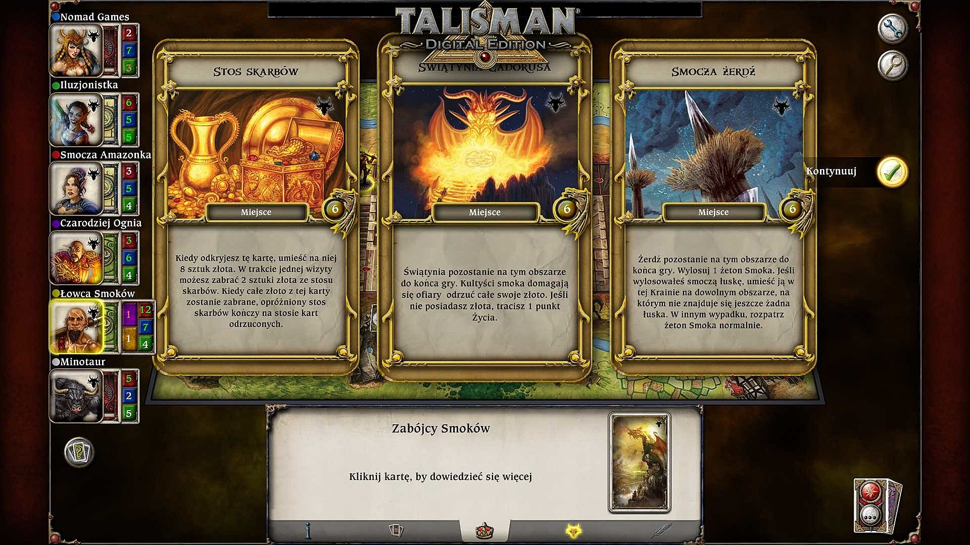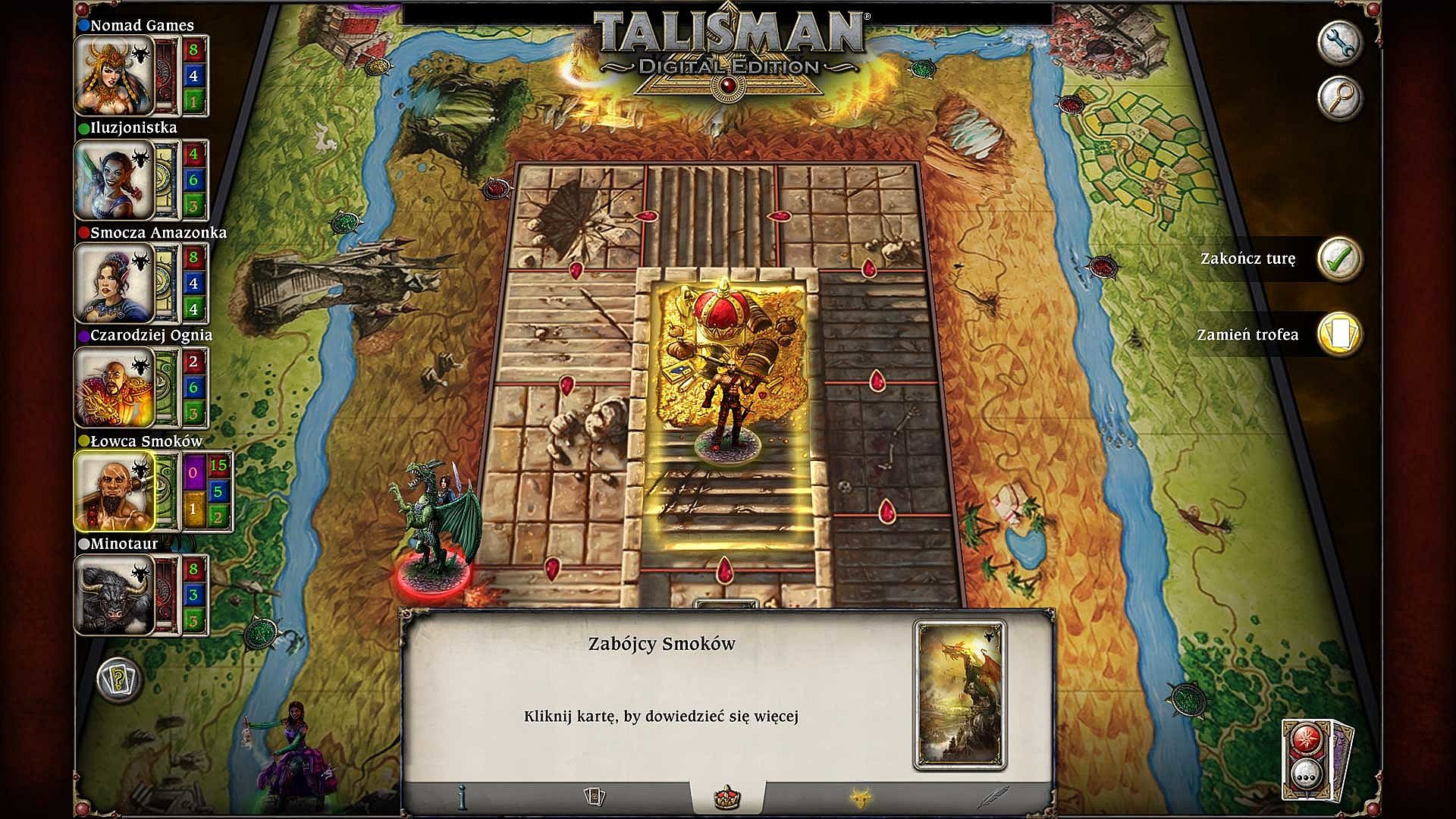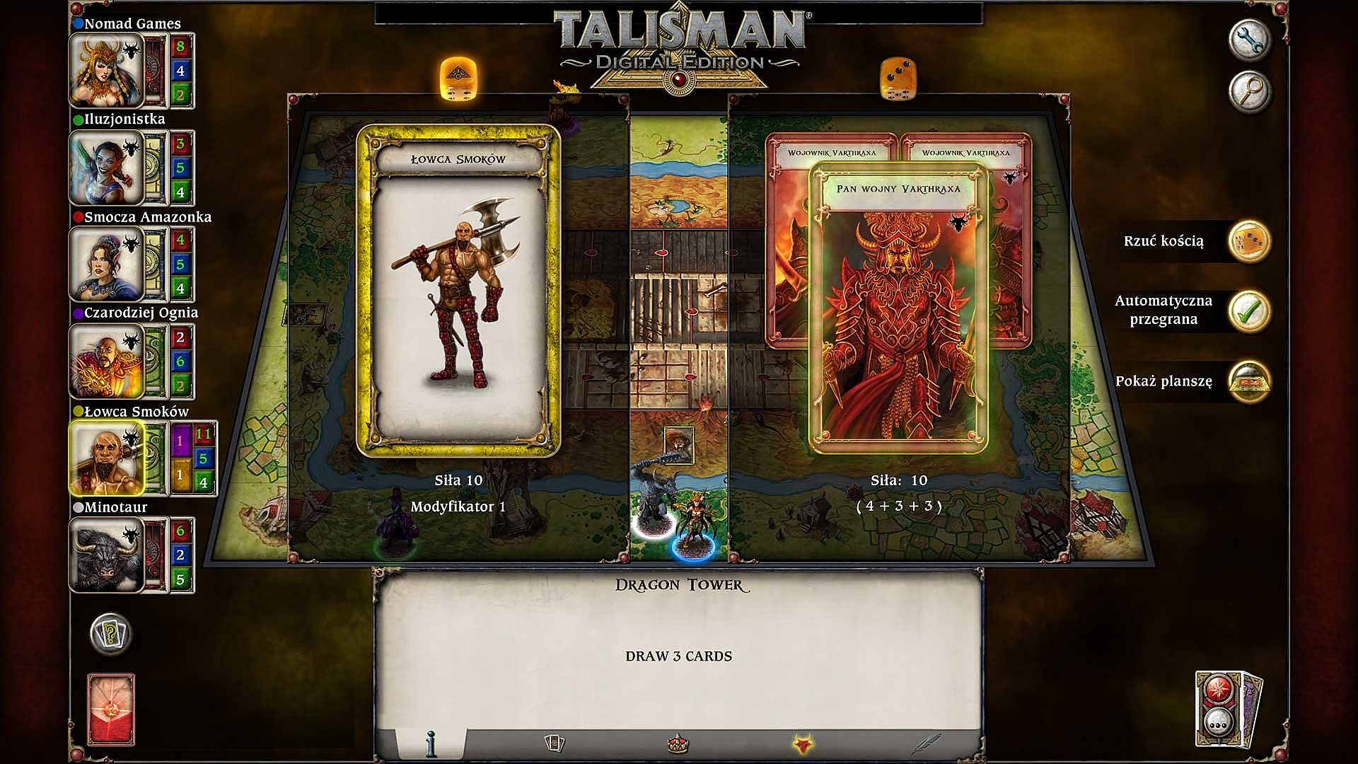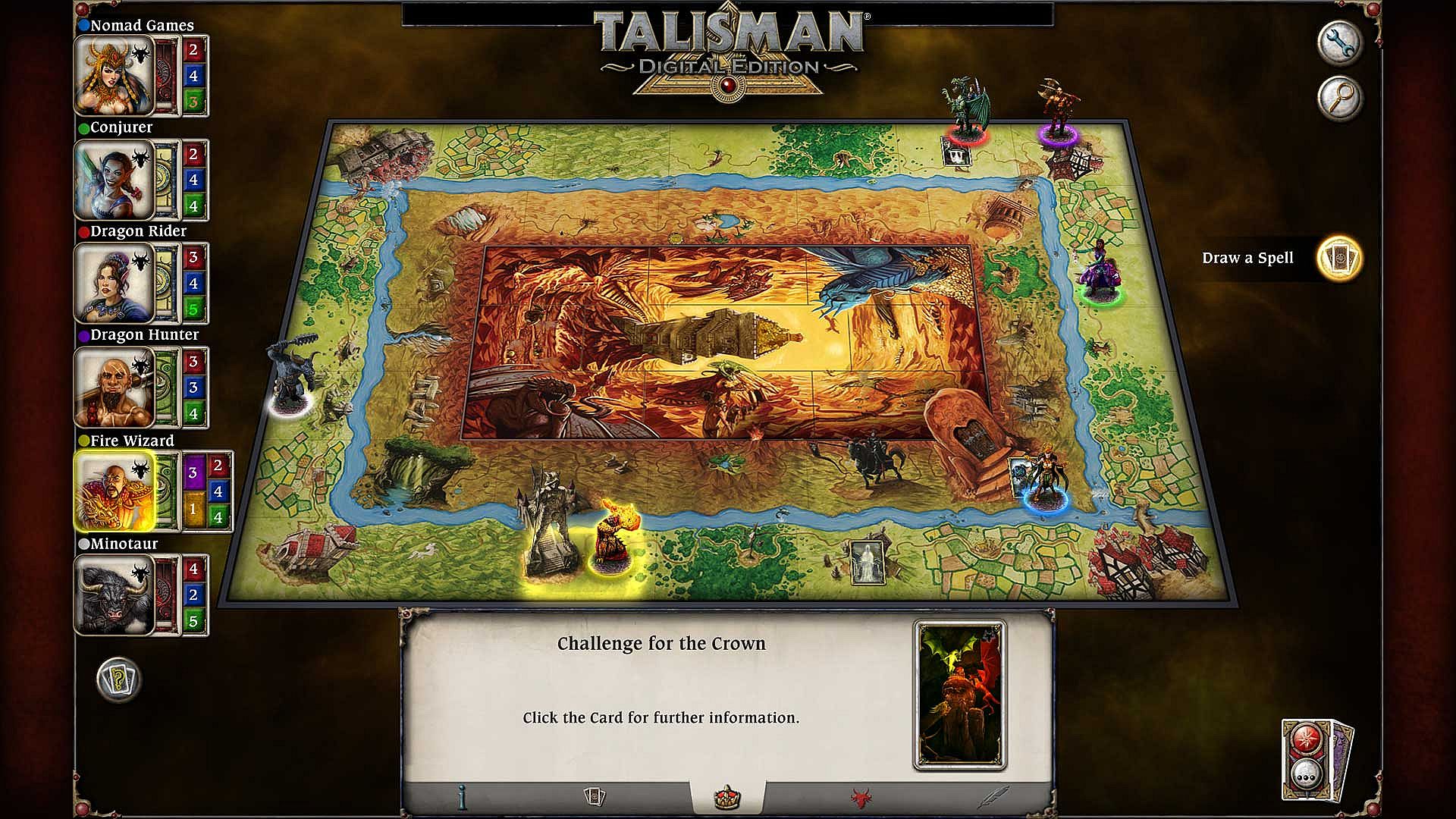 3-4) Moving Clockwise around the board, all characters must attack the Dragon King using Strength or Craft.