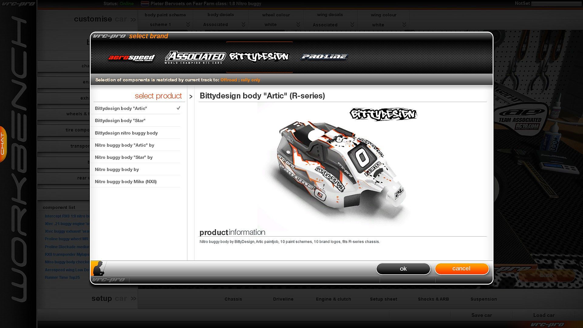 With the branded cars and components pack you can now build almost every possible combination of chassis and components, and most importantly, work with setups provided by other racers in the VRC community which use the same components, without this pack that would not be possible. This pack will also vastly expand the choice of components which gives your car more advanced driving characteristics, in other words: build faster cars!