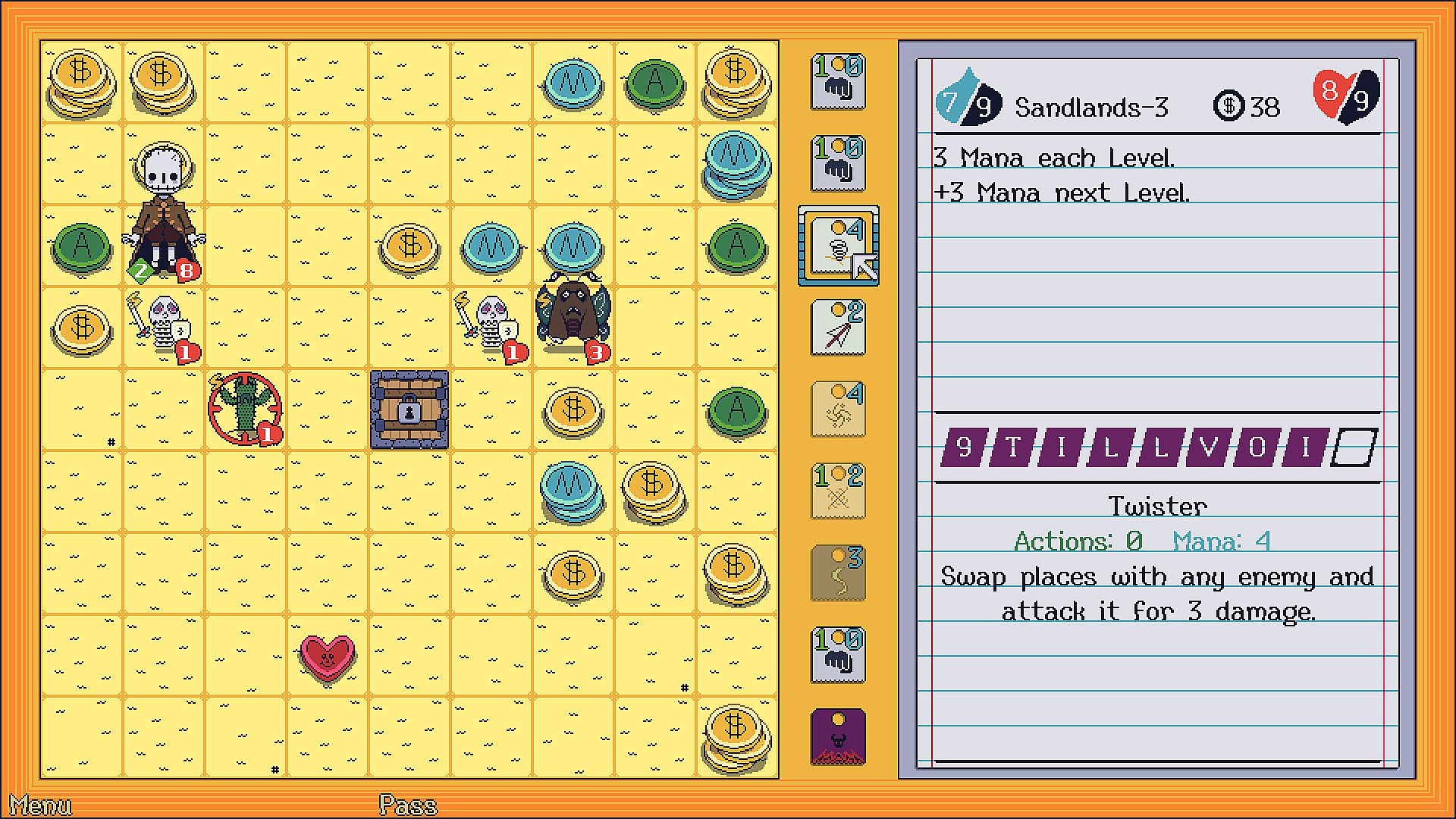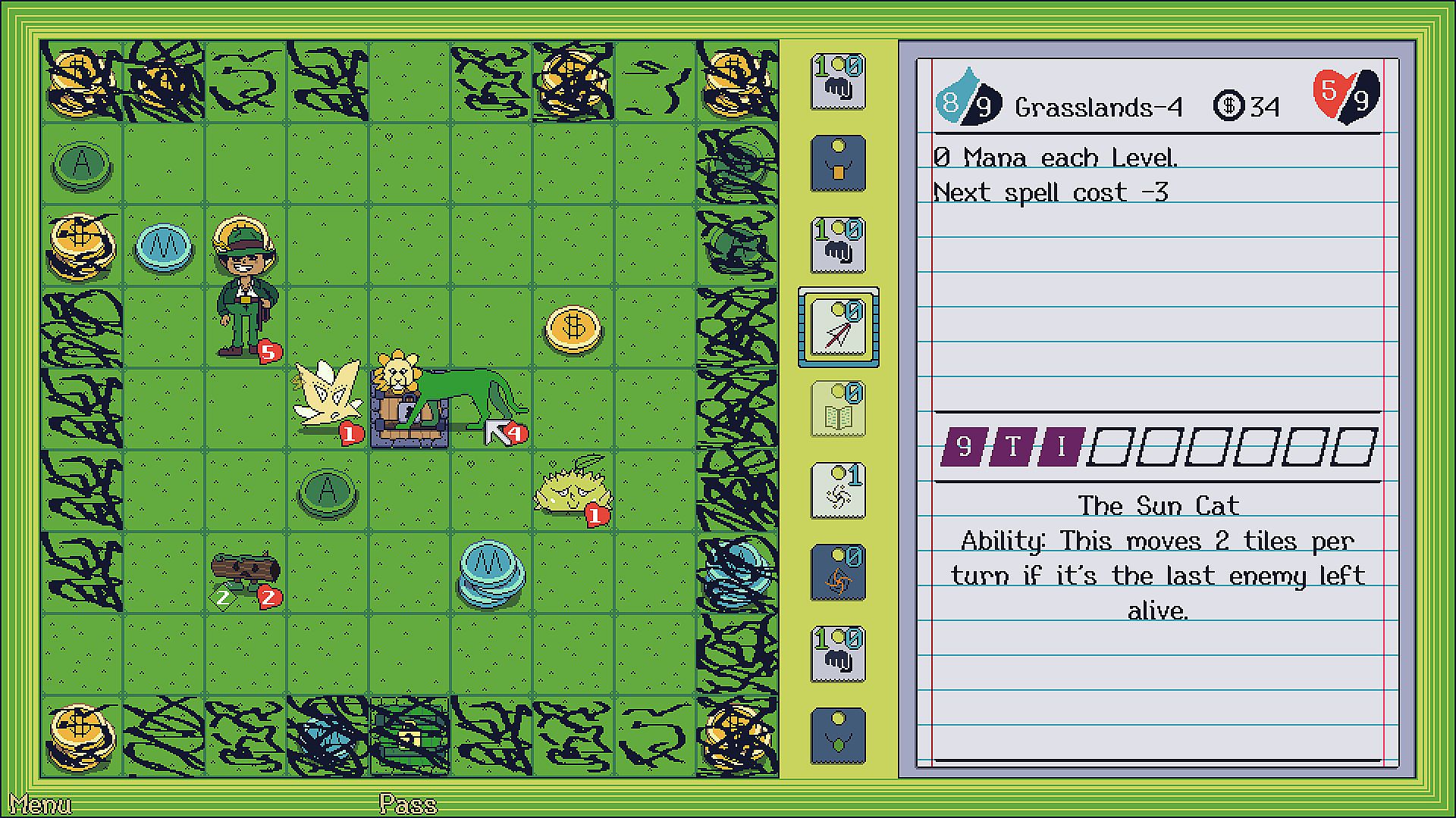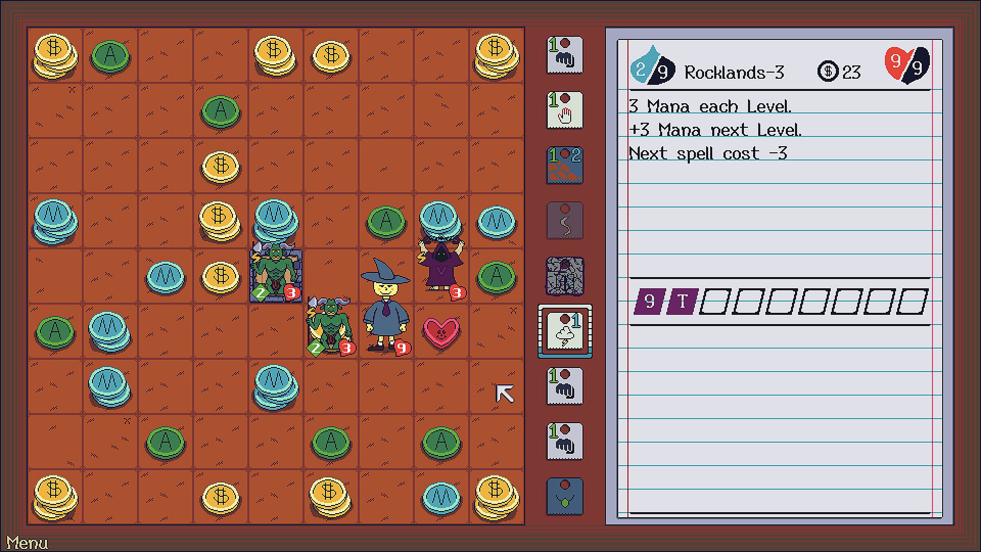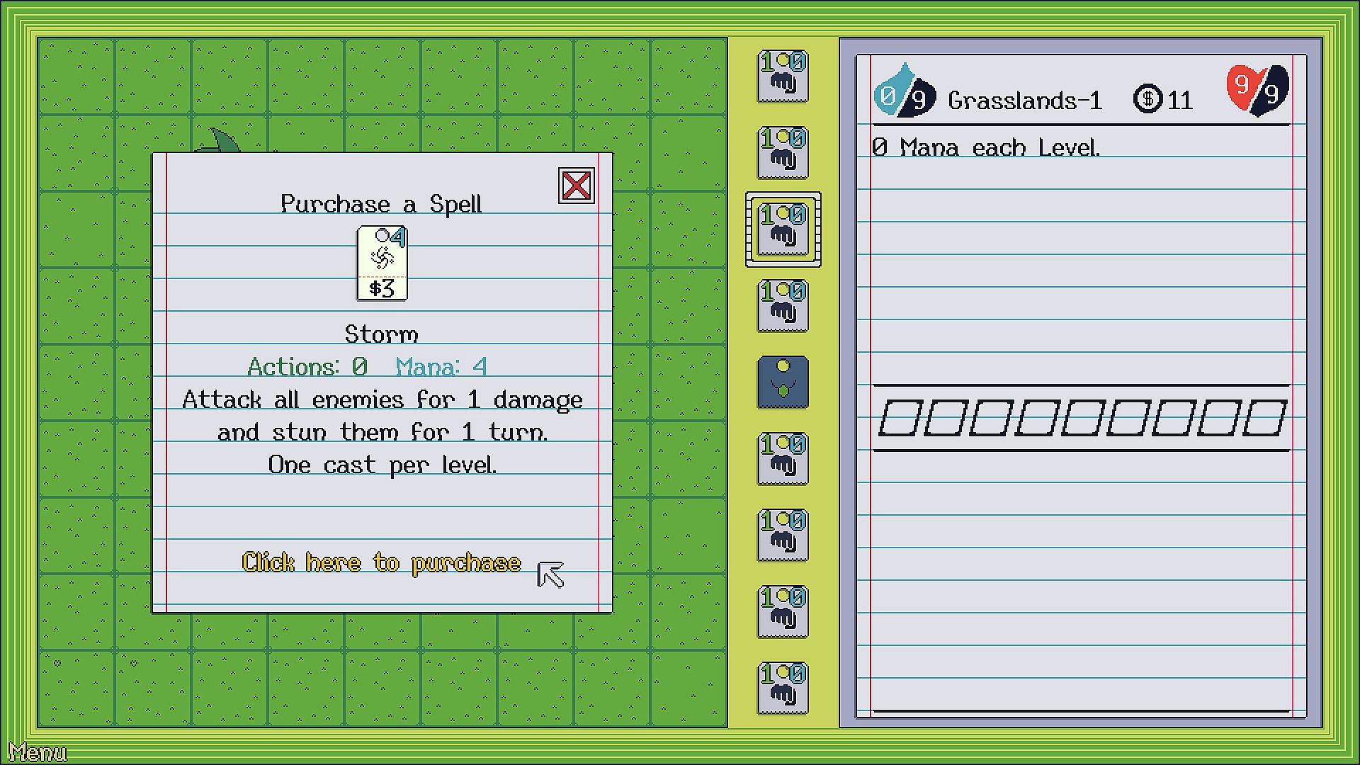 Buy new spells to become more powerful! Where you choose to place your spell is just as important as what spell you choose to buy! Choosing which spell slot to replace is important, because you'll only be able to cast that spell from that row!
