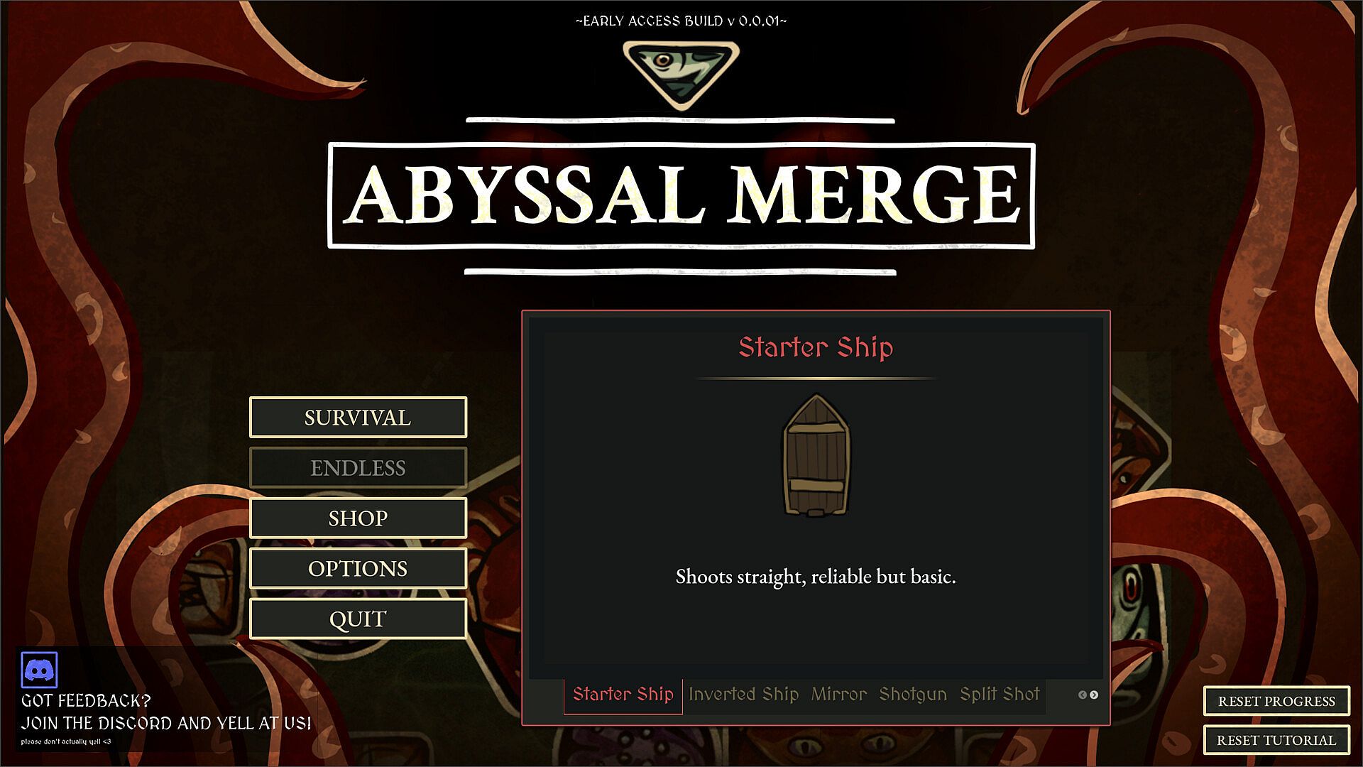 Abyssal Merge is a fast-paced roguelite shooter where your survival depends on your ability to multitask. As a lone captain in the heart of a monster-infested ocean, you must defend against waves of creatures while simultaneously catching and merging the fish in your net.