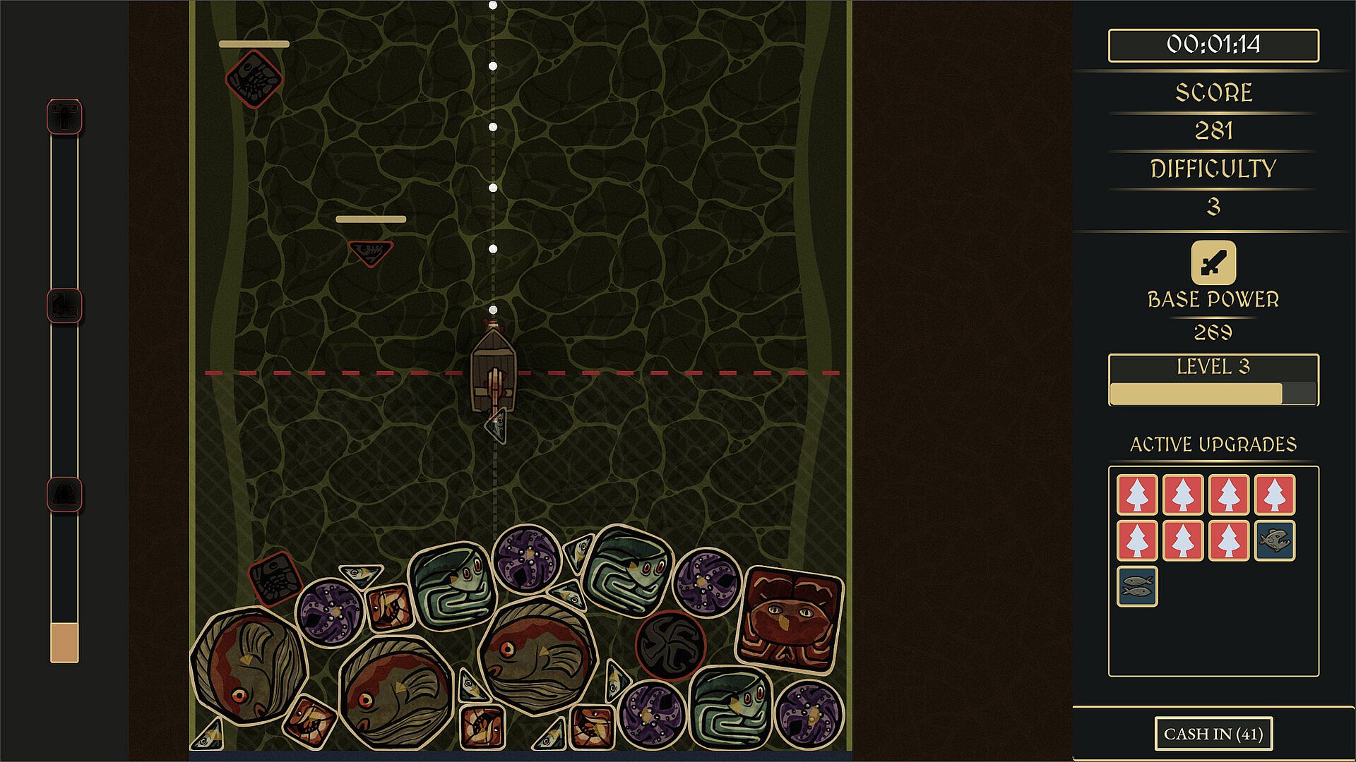 While fighting for your life, you must manage your net at the bottom of the screen. Merge fish to create larger, more valuable catches. The more you merge, the stronger your boat becomes, giving you the power needed to survive the escalating waves of enemies.