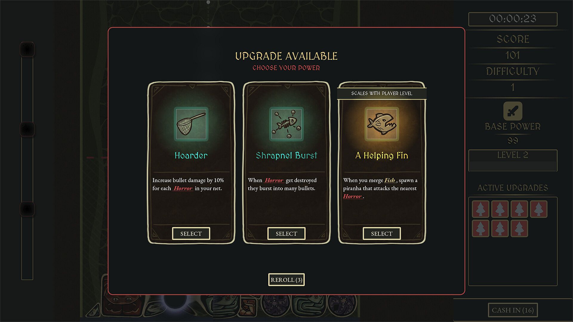 In true roguelite fashion, a failed run is not the end. The money earned from your merged fish can be spent in the Permanent Upgrade Store. Boost your stats and upgrade your ship to ensure your next adventure takes you even deeper into the abyss.