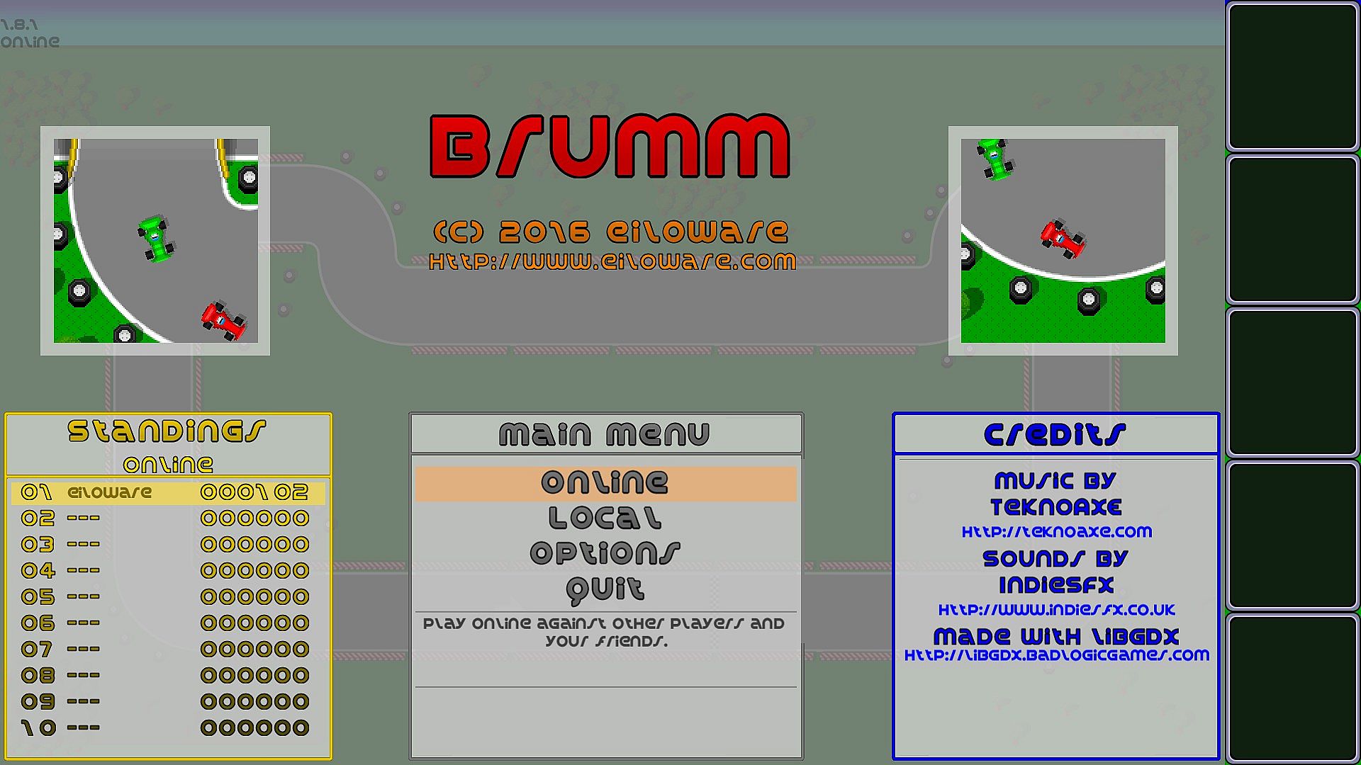 In the spirit of old arcade classics like Super Sprint and old computer racers like Micro Machines, you race on a topdown track with up to five players online or local in front of your computer.