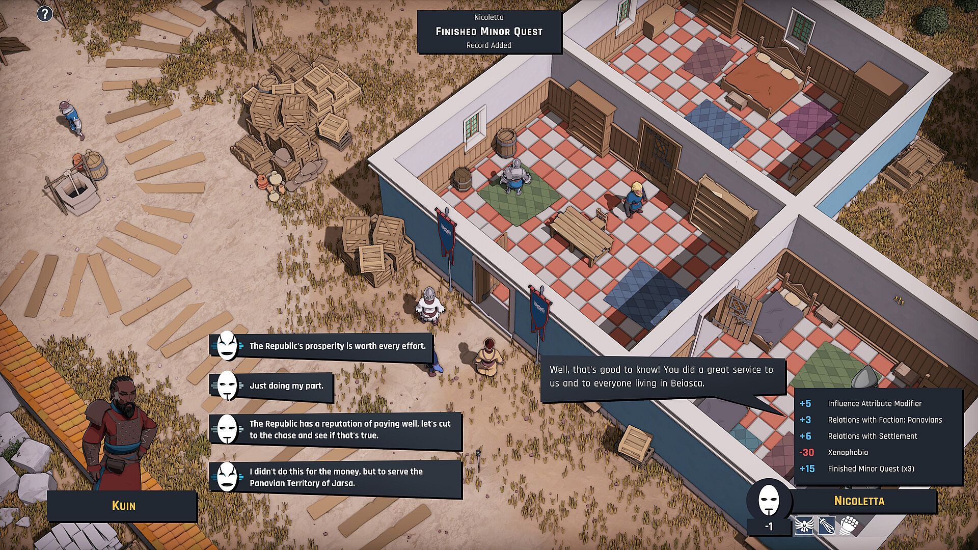 The characters will judge your good and evil deeds based on their personality or faction. You may be a robber, despised by common folk, but selling stolen goods could kick-start your career in the local crime groups!