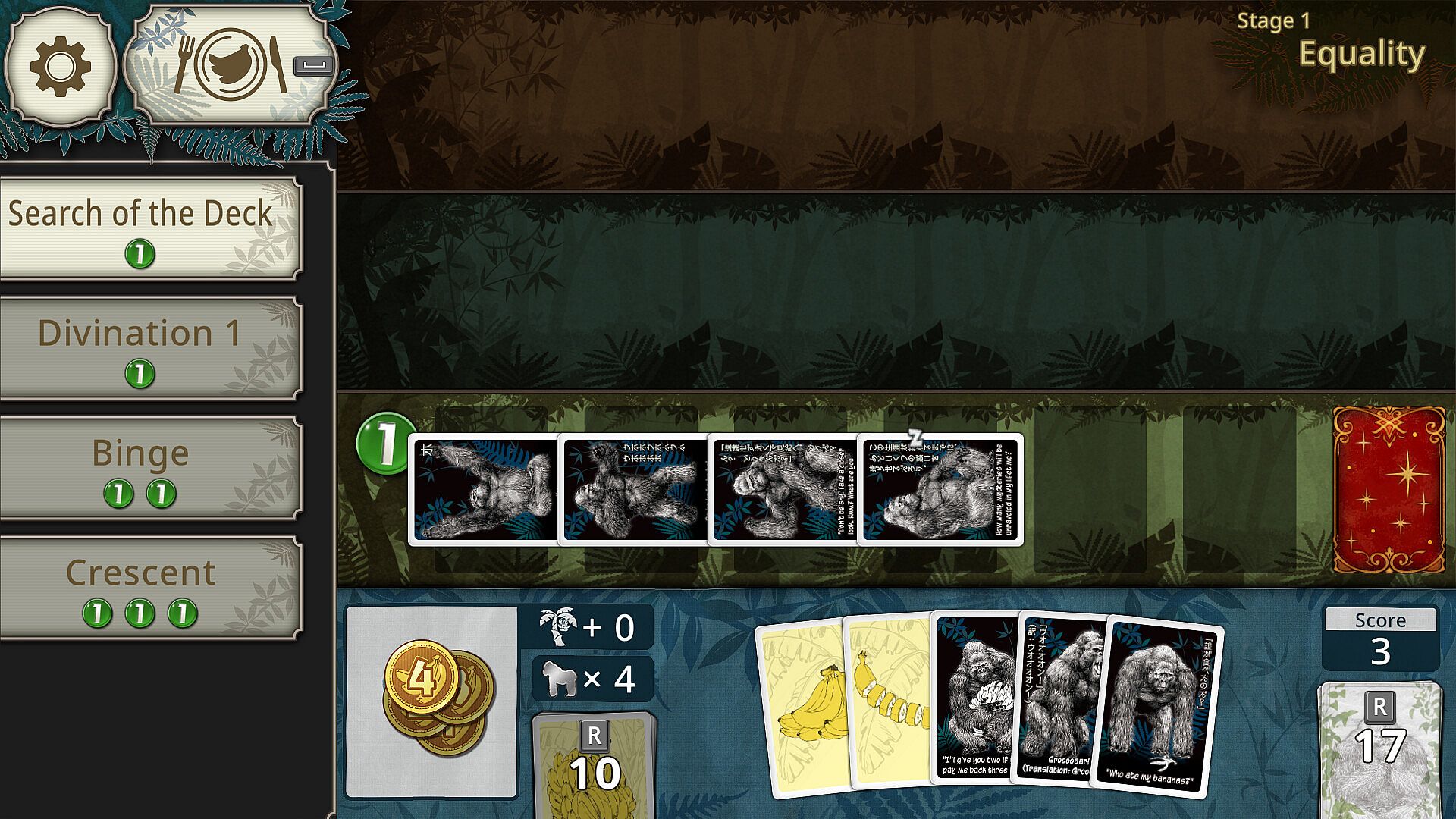 "Goritaire" is a solo card-based survival game centered on building a troop of seven or more gorillas. The deck consists only of Gorillas and Bananas, demanding strategic balance.