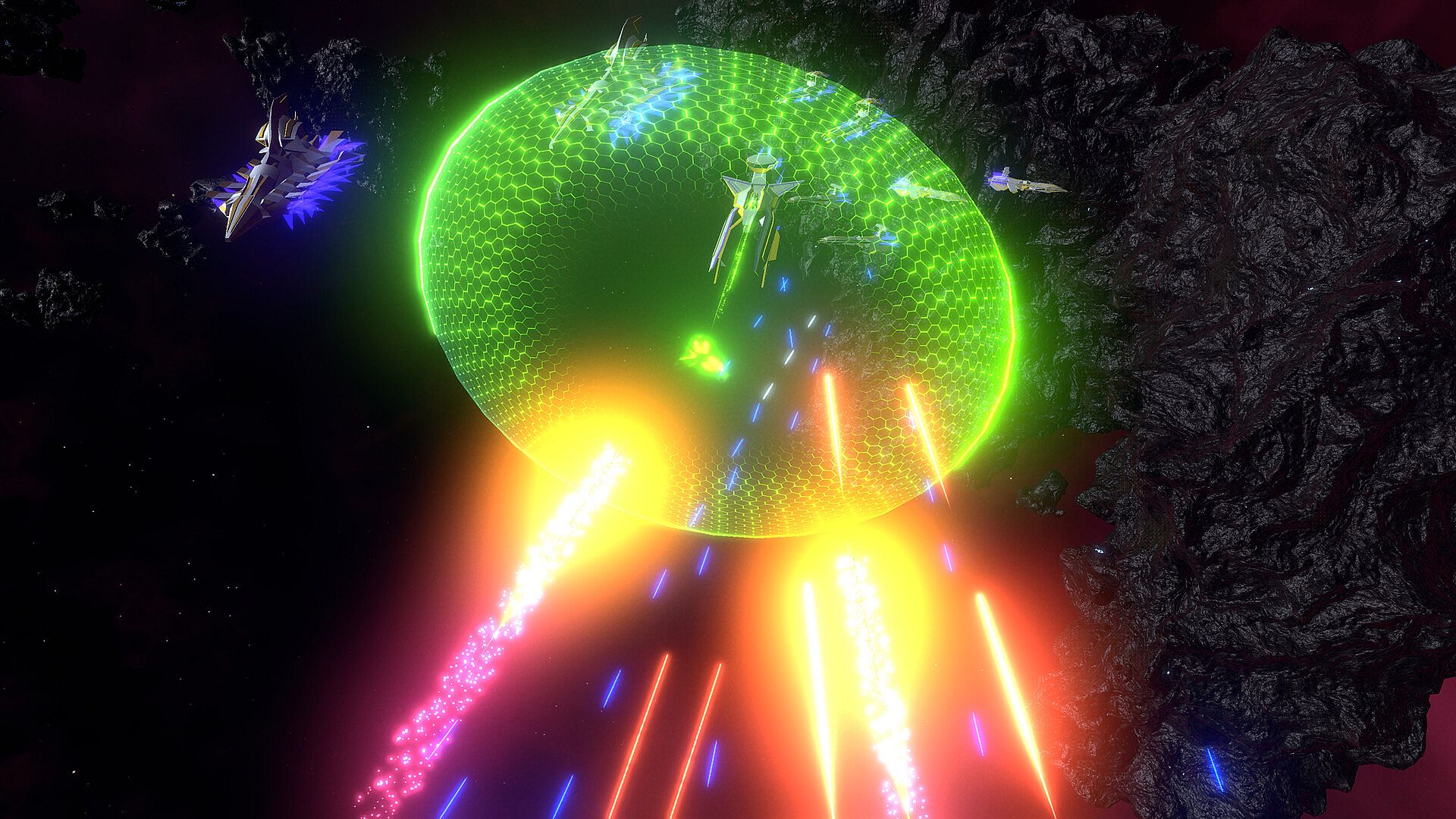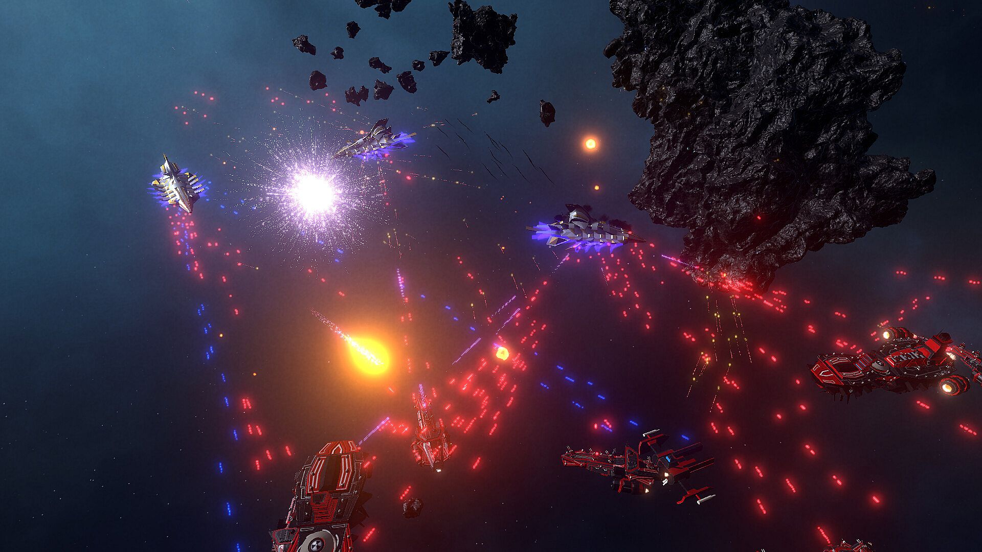 Command your fleet in a thrilling three-dimensional battlefield, aided by auto-pathfinding that makes asteroids and other obstacles seamless to navigate. Effortlessly arrange multiple ships into dynamic formations, and outmaneuver your opponents with advanced flanking tactics.