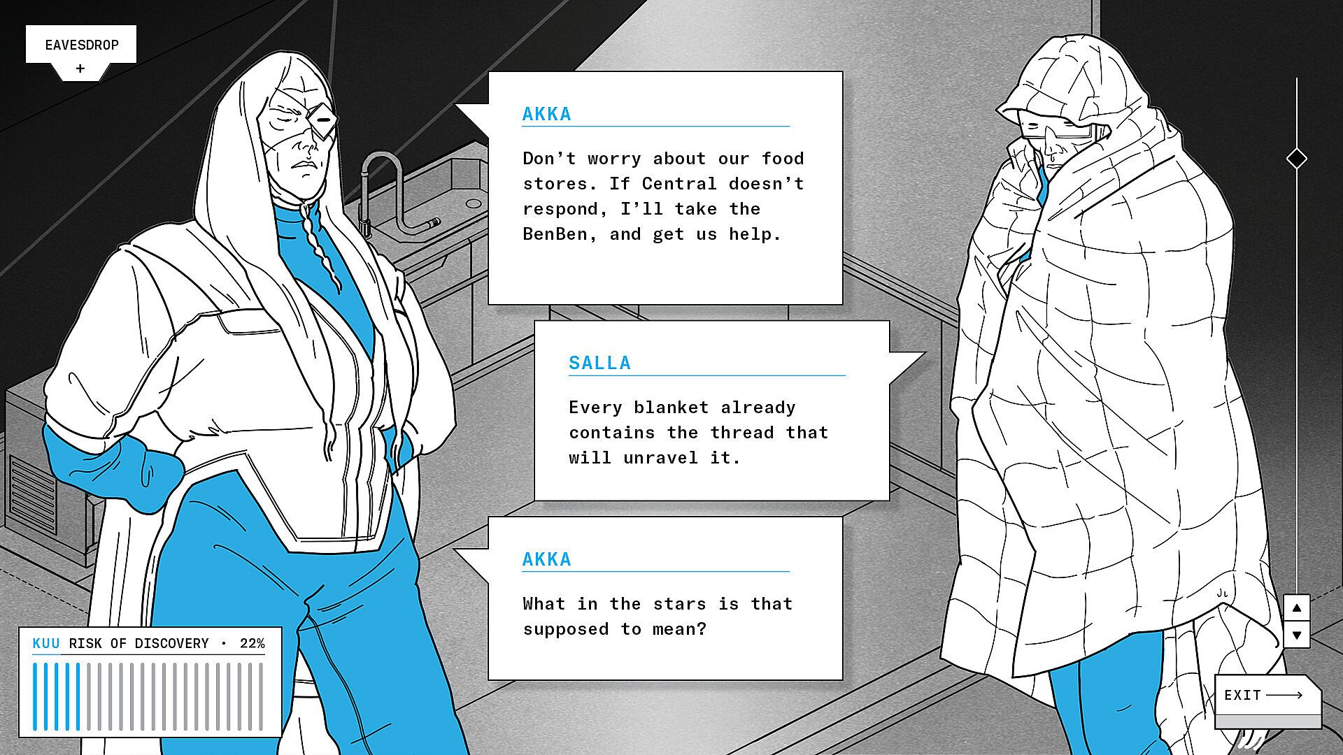 After a demanding day, your sleeper cell is the only place that feels safe. Here, in the stillness, you pore through the sacred monograph, an ancient study by a disgraced pseudo-archaeologist, for the secret to your sisterhood’s final chance at survival. Can you use what you learn, before running out of time? In the isolated emotional ecosystem of KUU, every impossible choice you make will long echo in the dark.