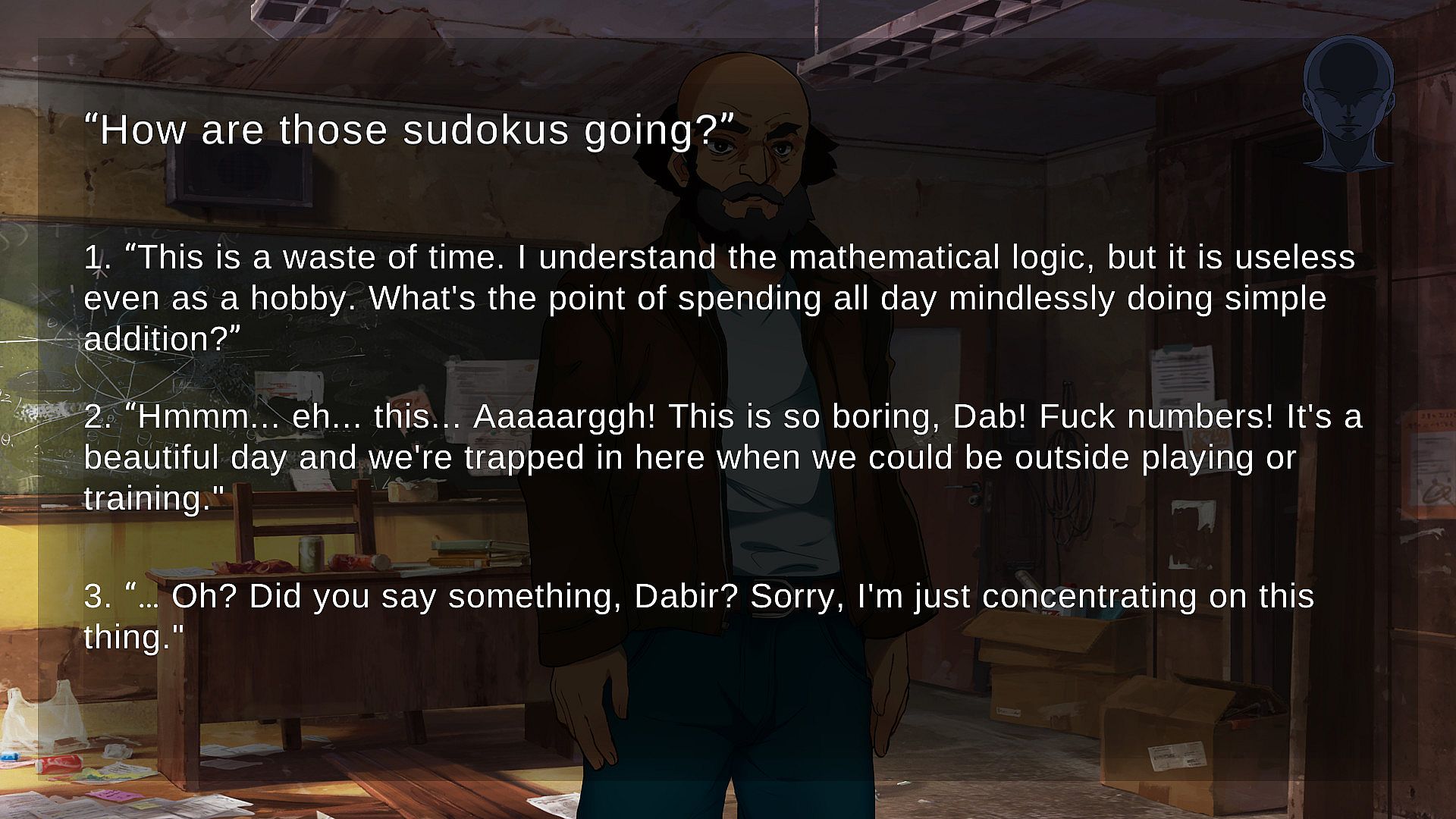 Omega Pattern is a Visual Novel which offers a variable multiple-choice decision system. This means that both the number of decision points and the number of choices or options that you will find in those decision points may vary according to your previous decisions during the game.