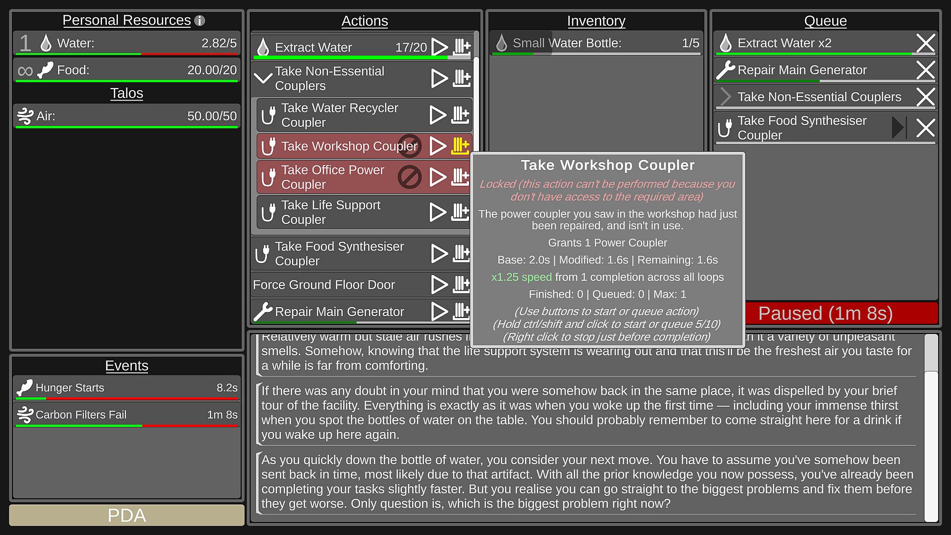 Each time you complete an action, you'll be faster on the next loop - to a point. Completing sets of actions enough times groups them together into a combined action, further increasing the speed and efficiency of them. But these won't be enough for you to solve all the mysteries of the planet on their own.