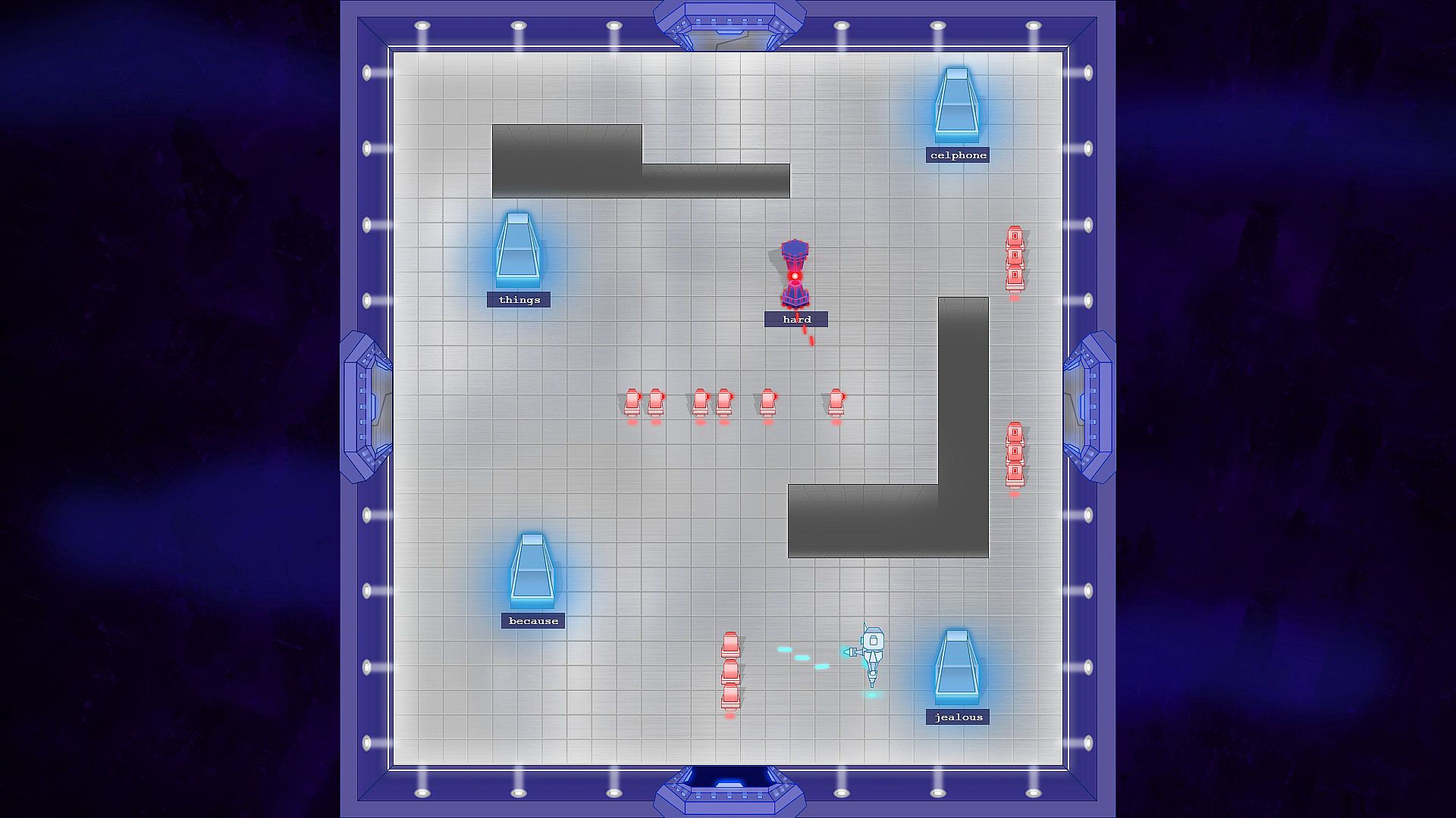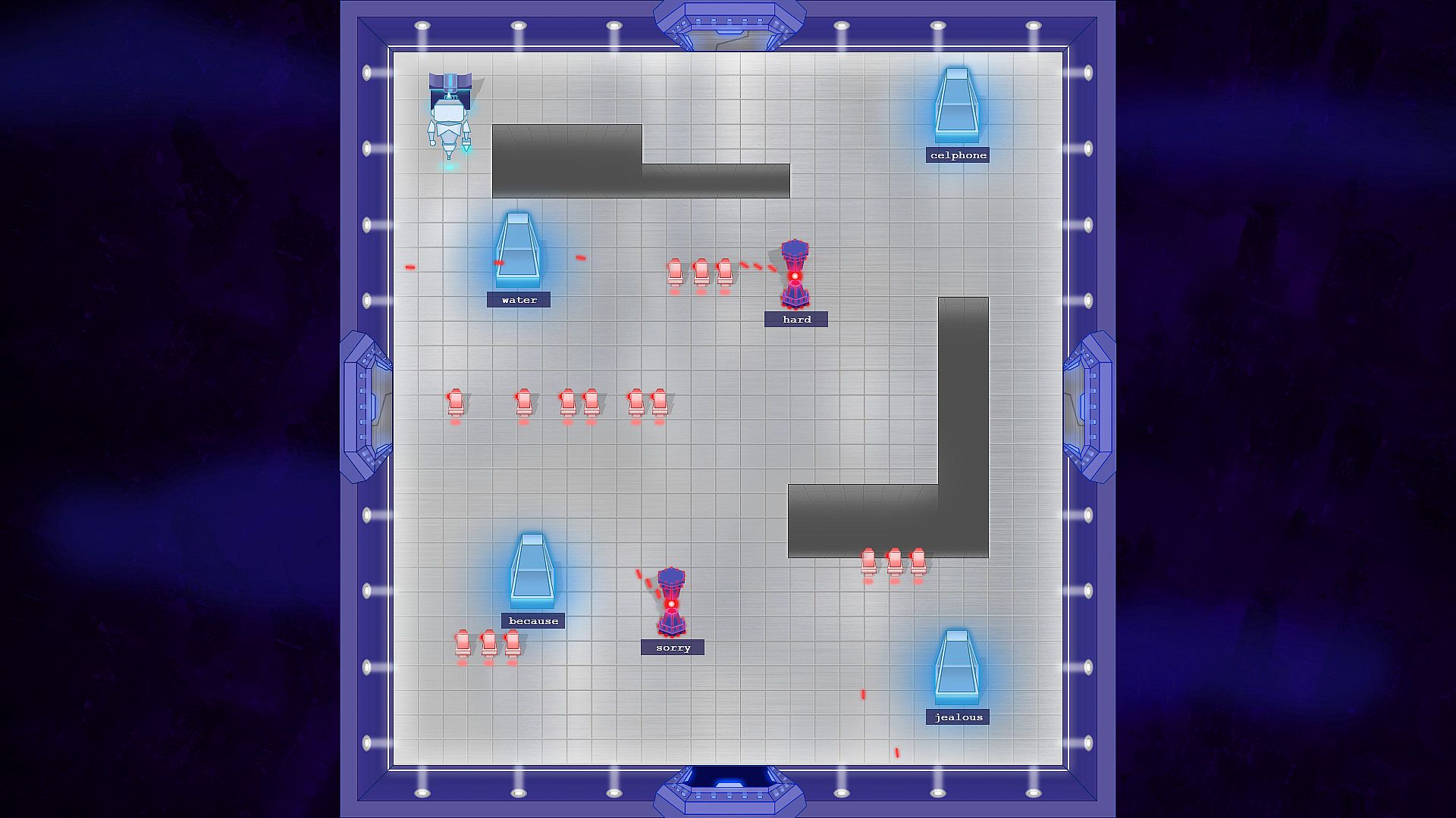 Our typing gunner robot must survive in the feared Tyroom, lucky him he'll help him. Type words to teleport, explode bombs, destroy towers while you dodge and shoot robots down! Try to survive all the waves and get to the top of the leaderboard!