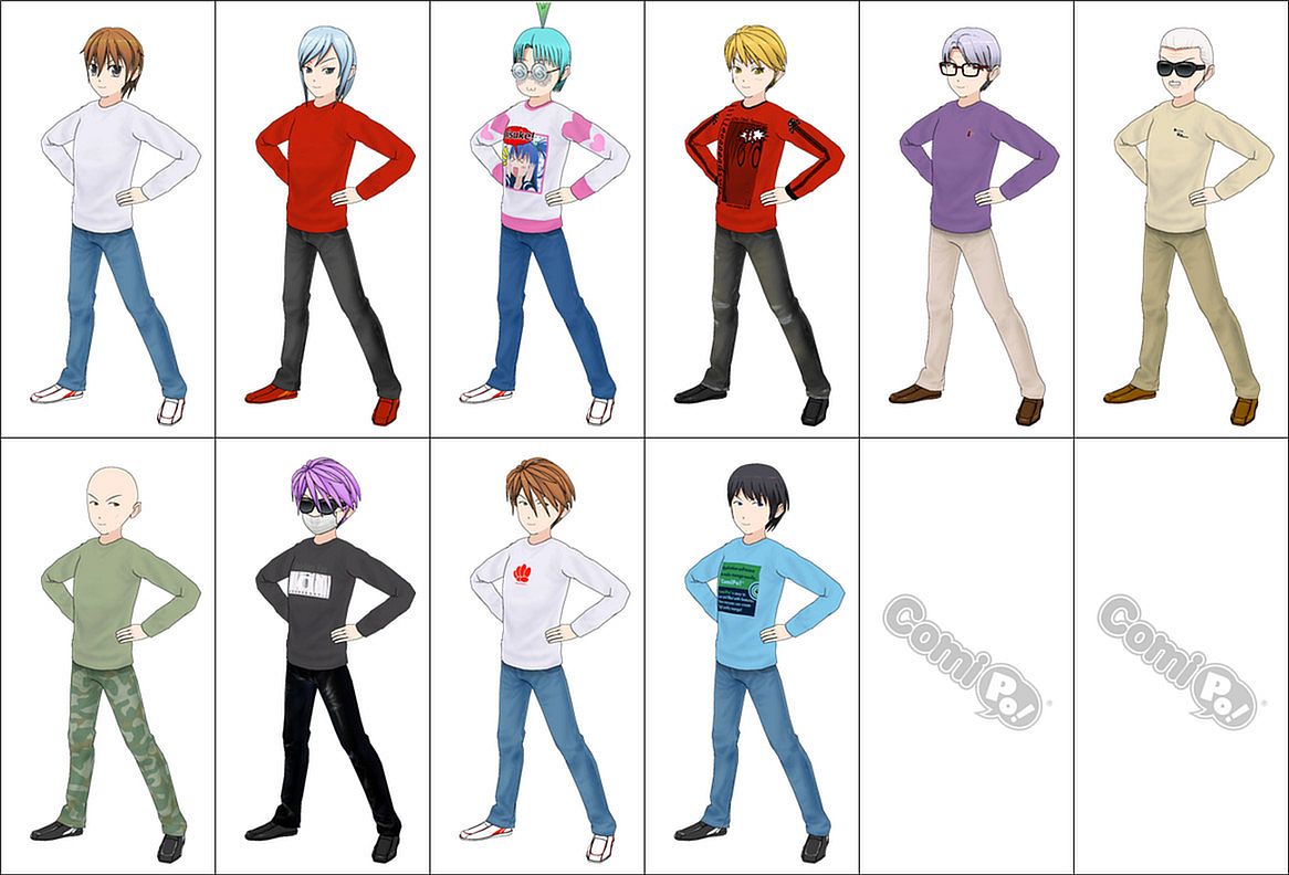 Versatility defines the Casual Wear Set in ComiPo!, offering 44 clothing sets split evenly for male and female characters. This animation and modeling pack delivers diverse options like skirts, long-sleeve shirts, sweaters, and camouflage styles. Dress characters for uniform-free scenes where they relax and show off their personalities through unique looks and colors. These classic outfits suit older or younger supporting roles across various lifestyles. Web publishing creators gain flexible tools to build expressive, everyday appearances. Fans of character customization thrive with this broad selection on PC.