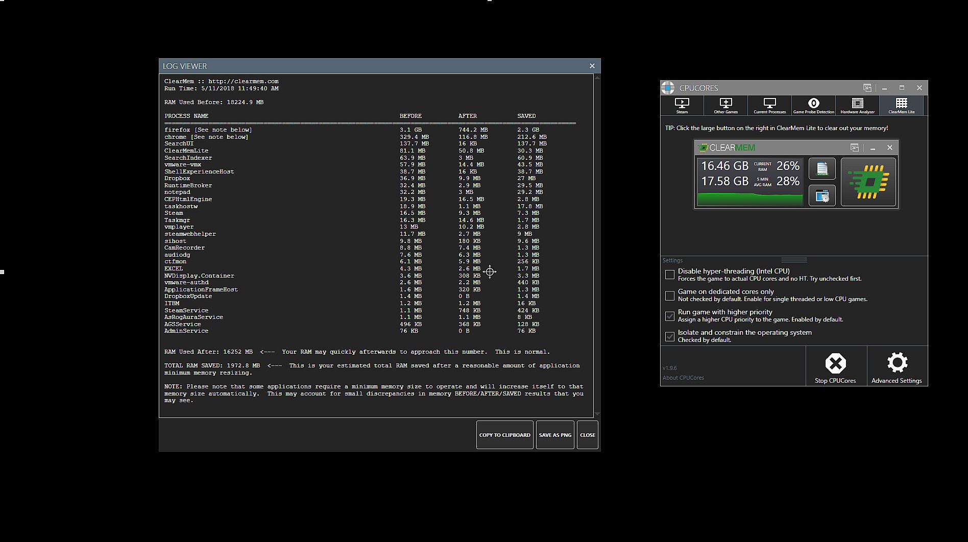 ACTUAL SCREENSHOT OF ClearMem Lite USAGE: