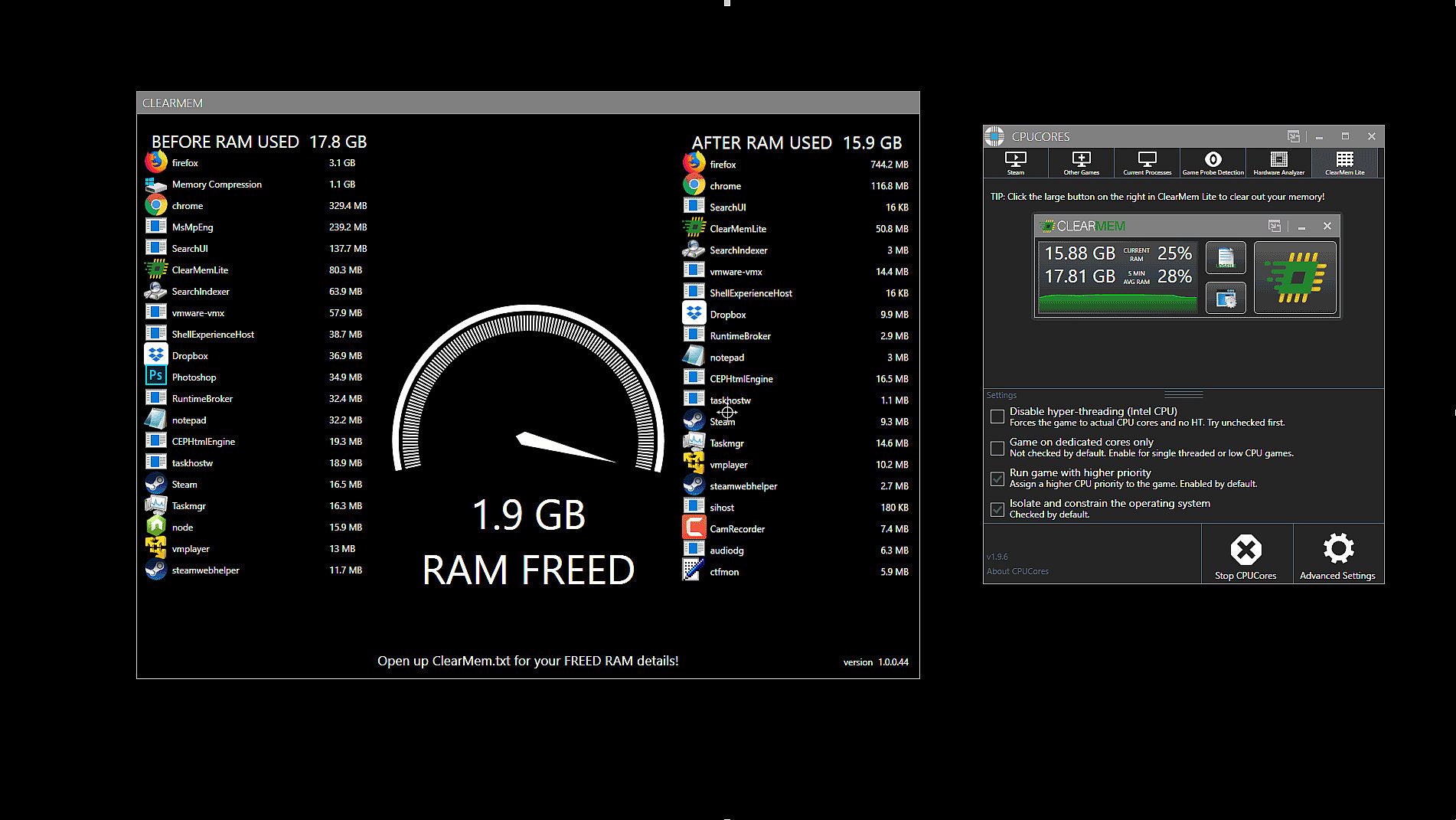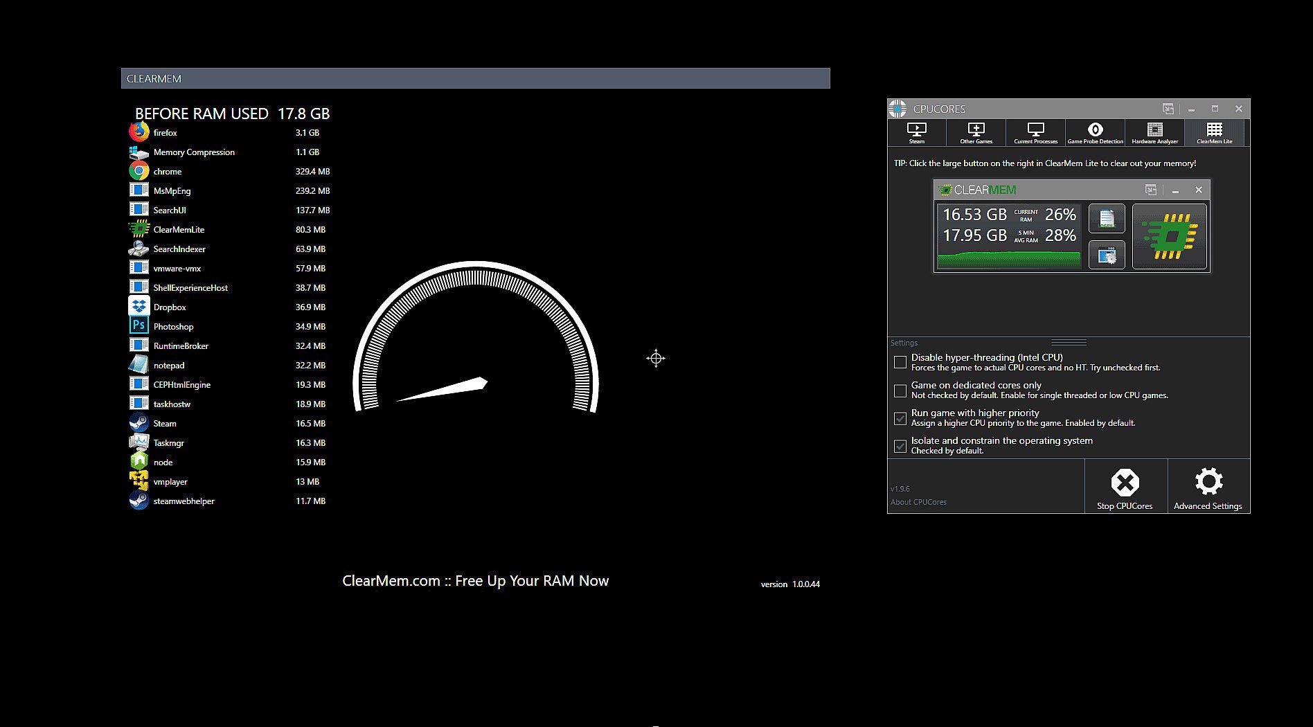 ClearMem Lite allows you to regain control of your RAM and let your game use as much RAM as needed!