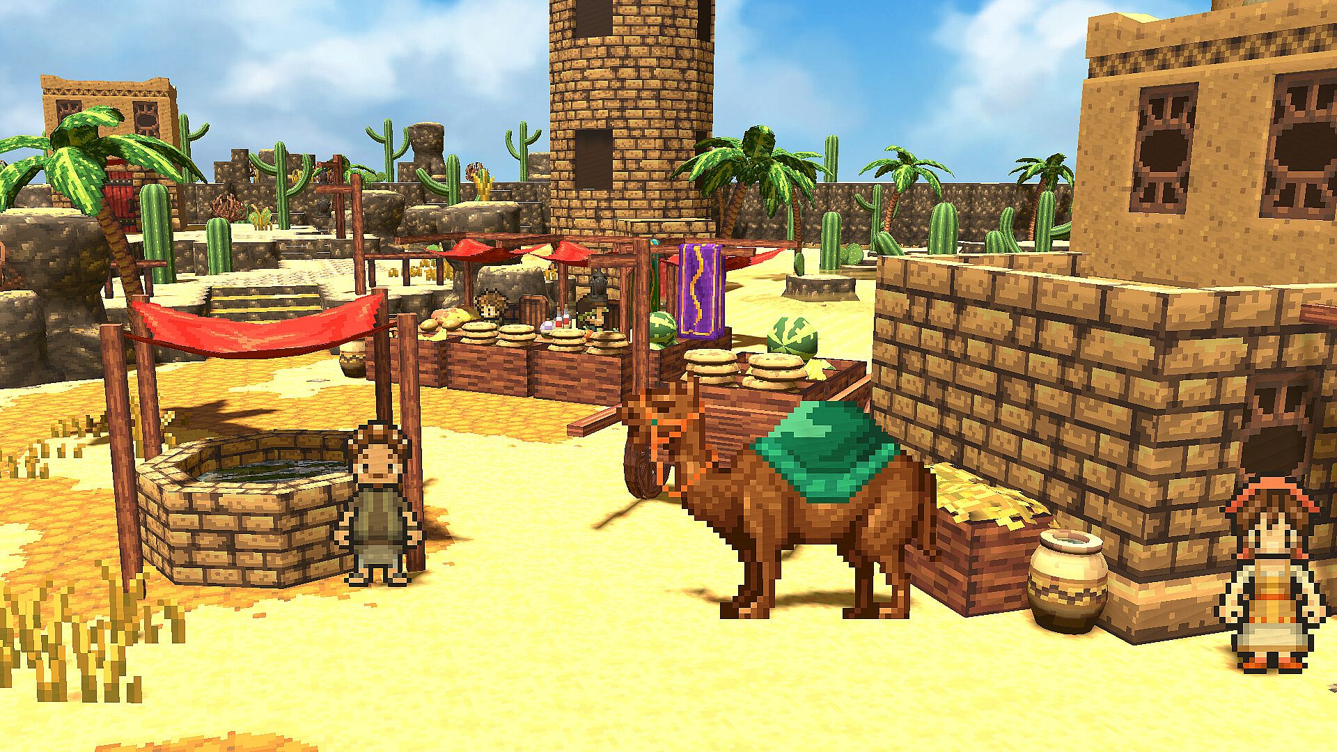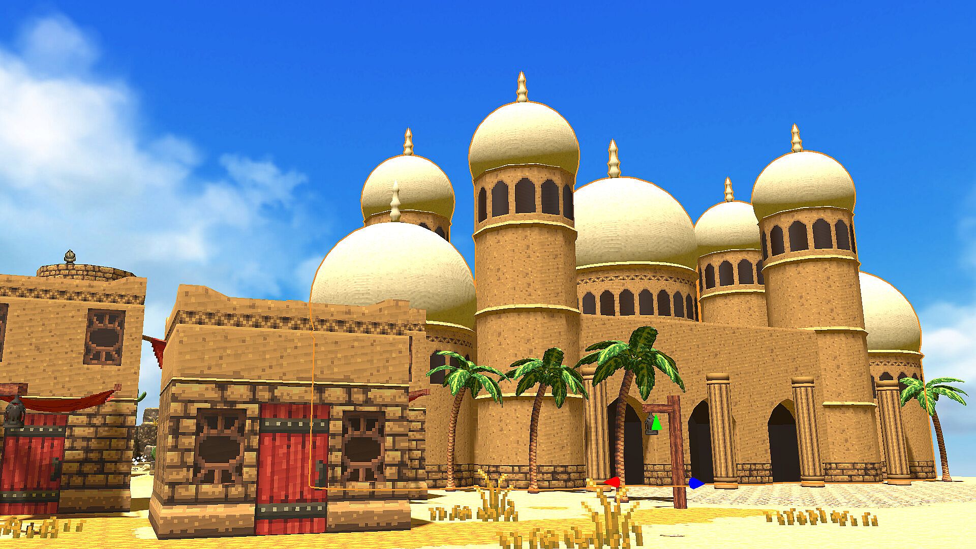 This DLC is a pixel art-style 3D model resource pack themed around a desert town. Featuring warm, carefully crafted low-poly models that harmonize with the pixel art world, it includes traditional buildings made of stone and sun-dried bricks, markets, luxurious mansions with domes and minarets, temples, ruins, and monuments that evoke a sense of history and faith. Additionally, it offers various interior decorations and plants that can be used for indoor scenes. With a wide range of assets, you can freely recreate the landscape of a desert town.