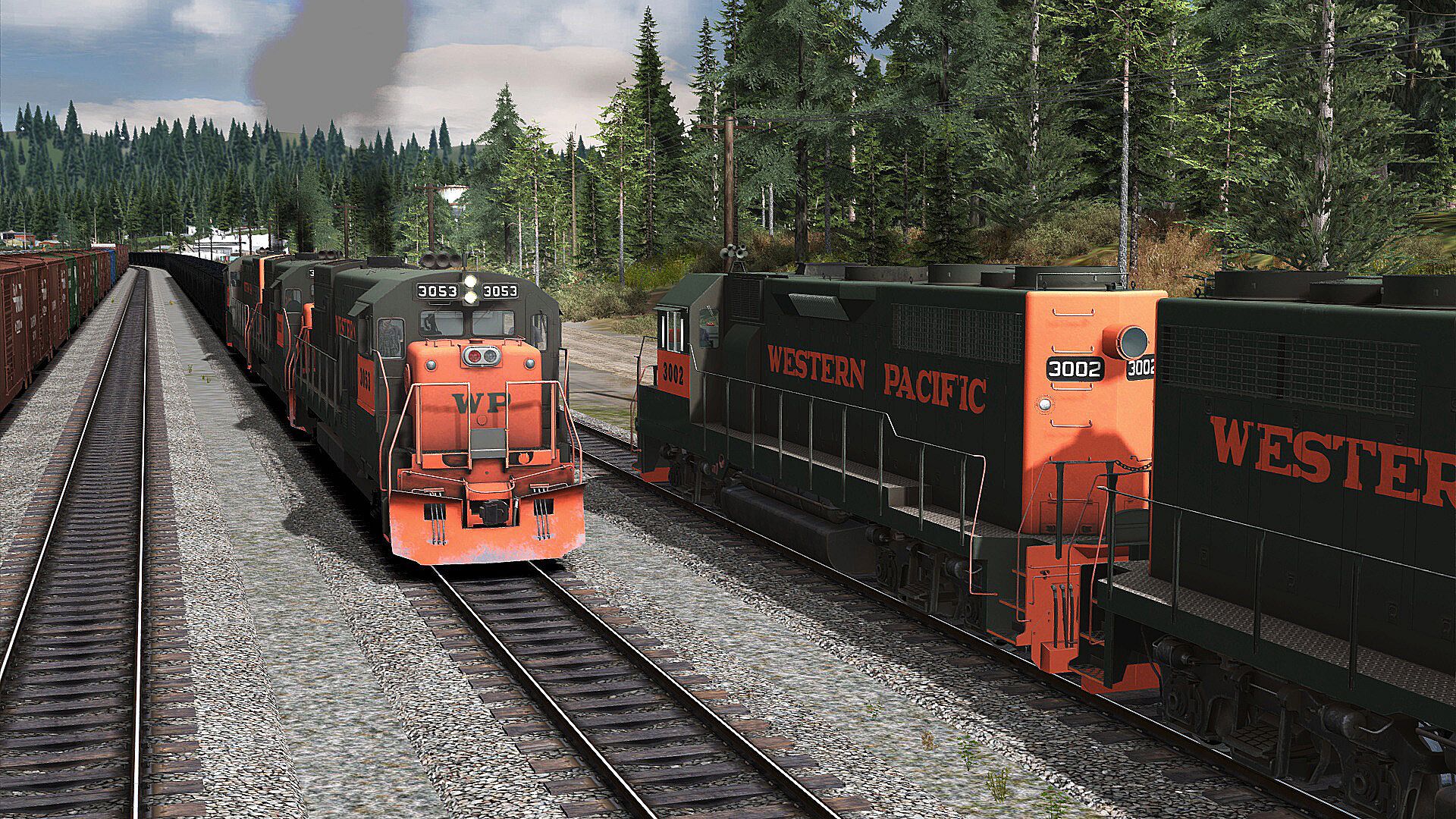 - Climb aboard a pair of Western Pacific General Electric U30Bs wearing green and orange liveries to handle challenging local and switching duties on a run through the heart of the Feather River Canyon west of Keddie.