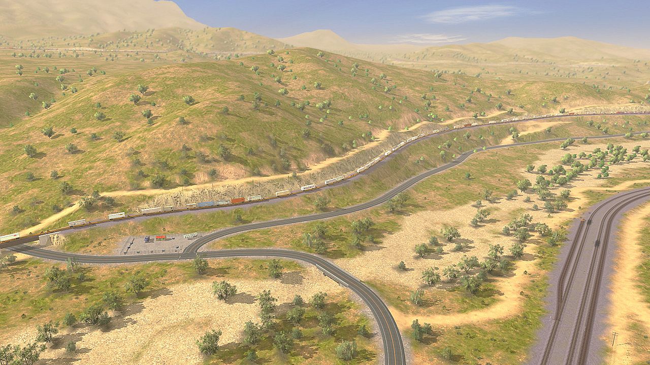 The Mojave Sub Division. Known for its rolling hills, drop off cliffs, and the famous Tehachapi Loop. This route is challenging with its constant grade changes, up to a ruling grade of 2.2%, but yet satisfying with its mixture of desert and mountainous scenery colors. If you're looking for a challenge on one of the busiest single mainlines in the United States, the Mojave Sub is for you!