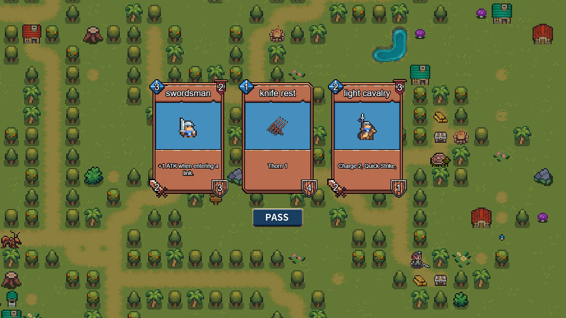 Once placed on the chessboard, cards autonomously attack adjacent enemies at round's end.