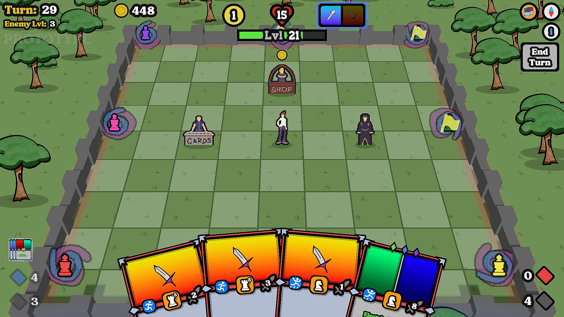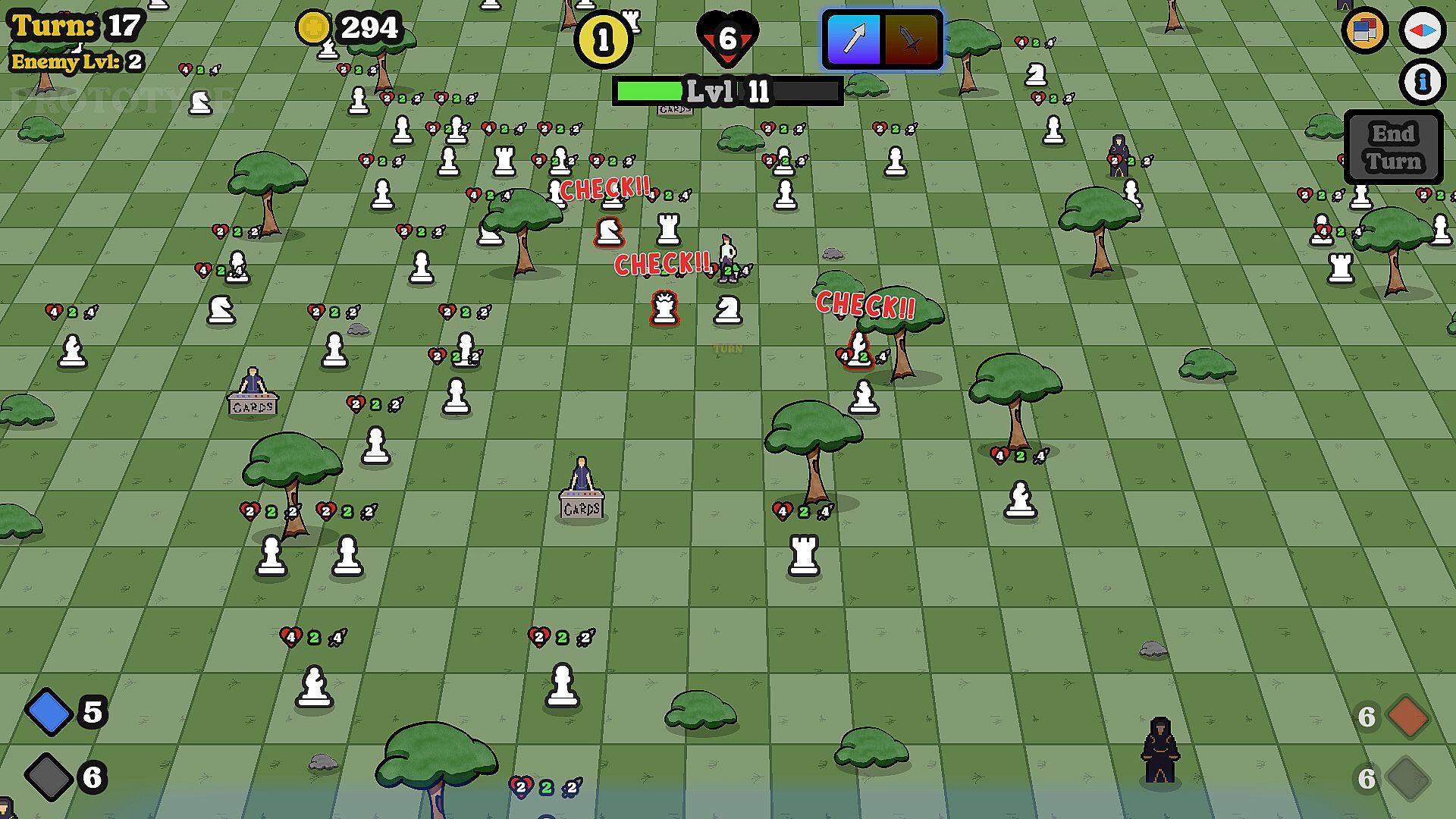 As you venture out in search of each Grandmaster you'll encounter many chess pieces, all trying to put you in 'Check'. Capturing enemies allows you to upgrade your cards, bringing your decks closer and closer to unimaginable power!