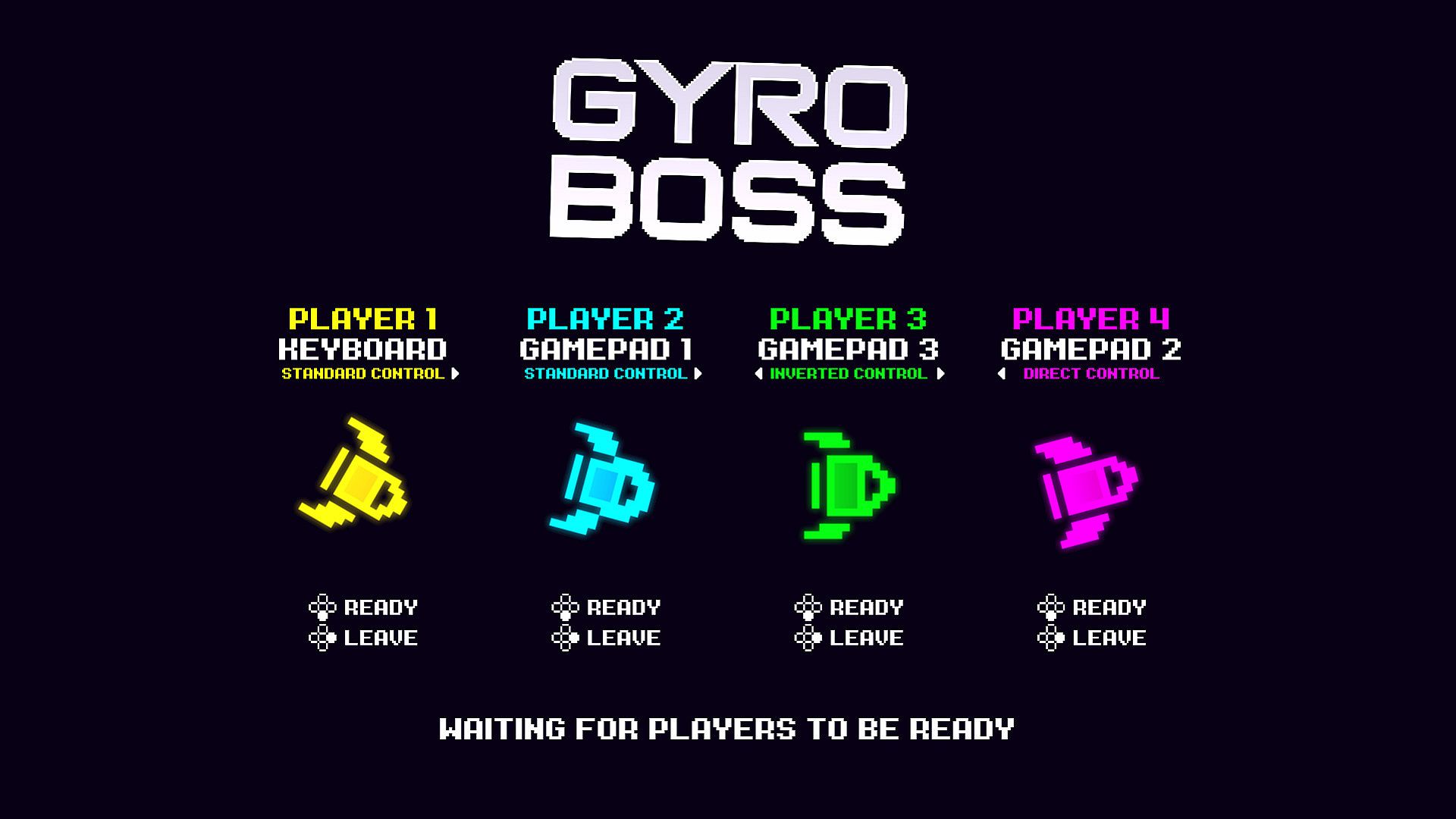 New to Gyro Boss DX - enter party mode with 2-4 players and battle the boss together. Party mode cycles through a variety of weird mini games including faulty brakes mode and civil war. Who will come out on top?