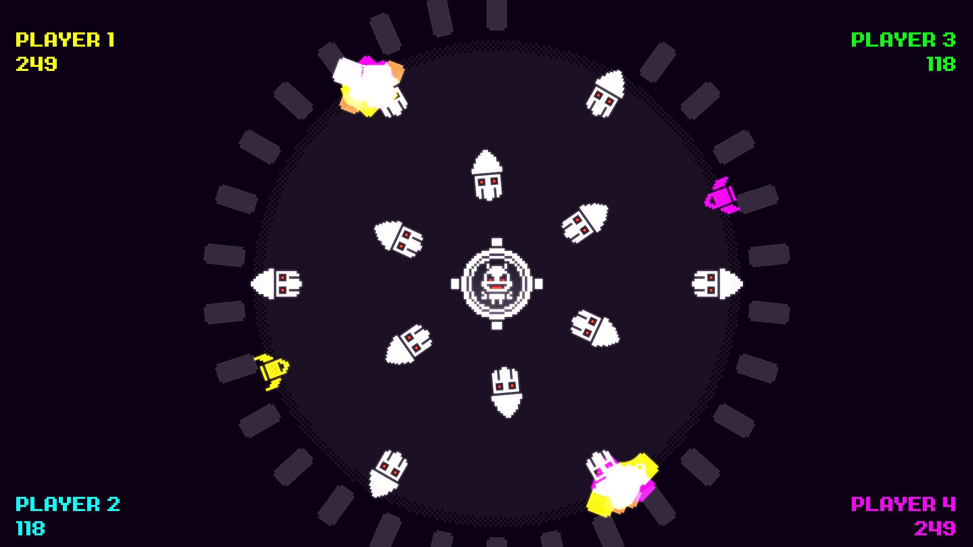 Defend your home planet from intergalactic pirates and their leader, the Gyro Boss, in this action-packed casual shooter. Orbit the boss on a fixed circle while dodging endless assaults of wild weapons like squid swarms, extendable boxing gloves, cluster bombs, and homing silverfish. Check statistics to see which attacks end your run most often and push for the highest score despite inevitable defeat. Classic mode offers 50 objectives to chase solo, while new party mode brings 2-4 players together for chaotic mini-games such as faulty brakes and civil war. Battle as a team to outlast the boss and claim victory. This endless dodge challenge suits quick solo sessions or group showdowns with friends.