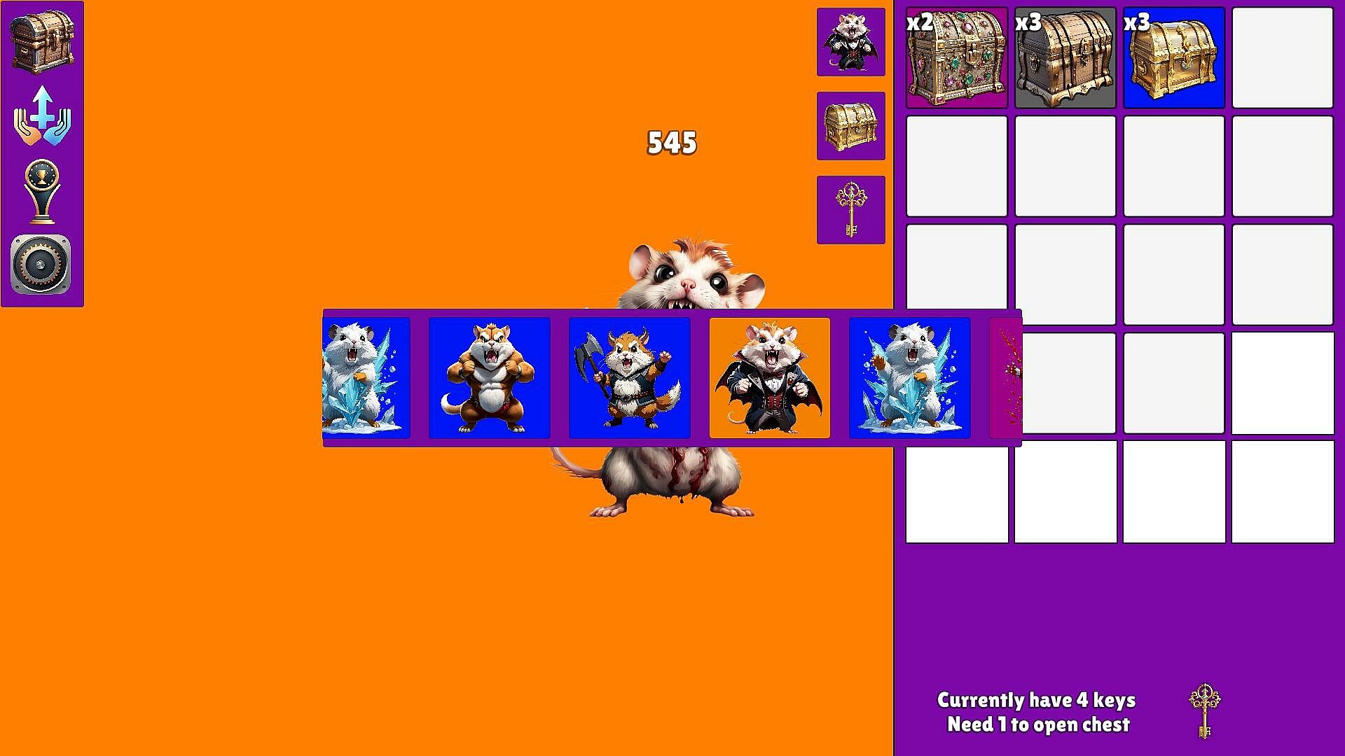 Hamster Clicker is a clicker game about collecting hamsters! Every 3 and 18 hours, you get dropped a chest with hamsters!