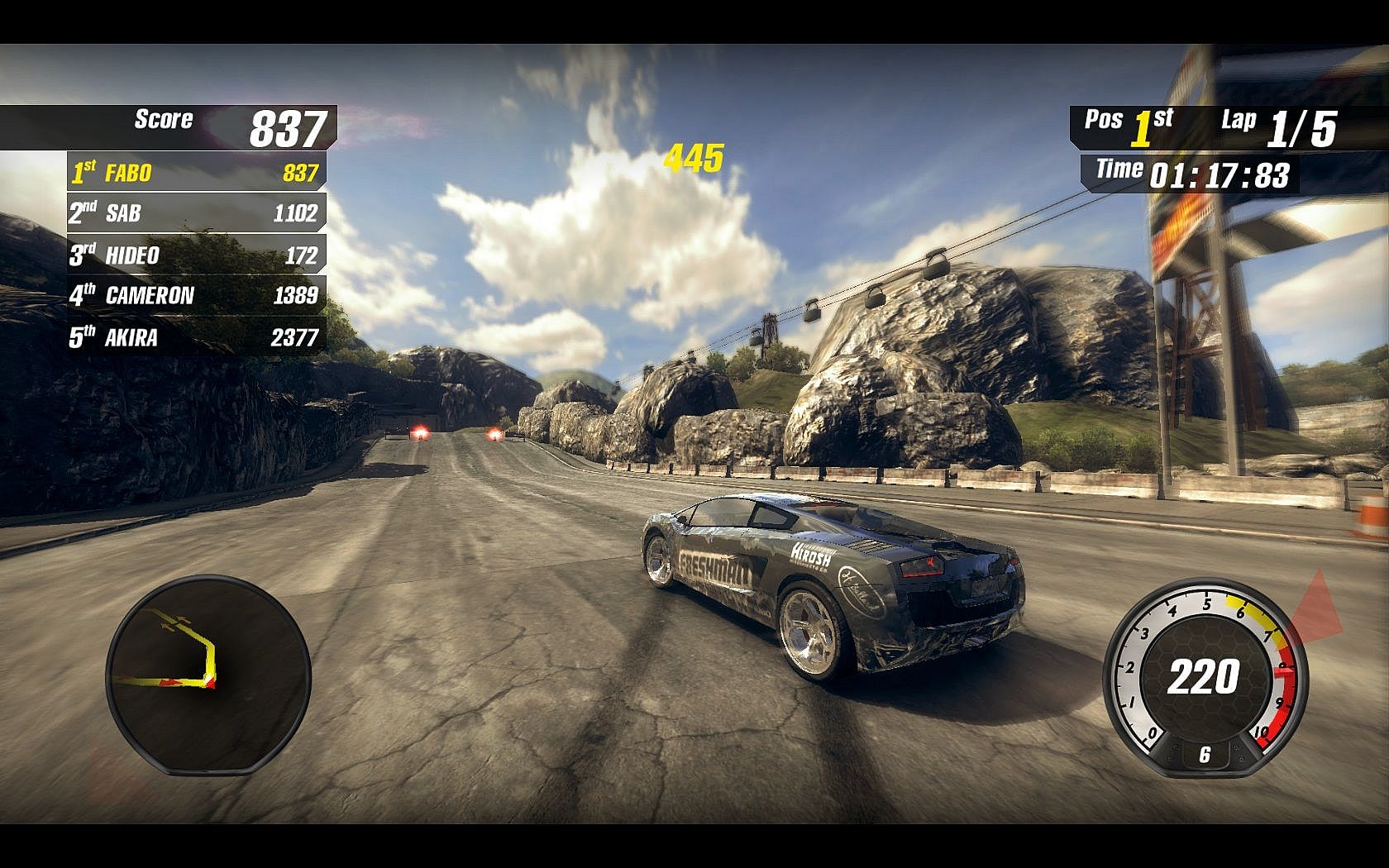• Race mode: A new twist to the racing genre: Players can gather score and burn it away to get ahead or collect score and jump to the front at the end of the race when it is converted into time bonus.