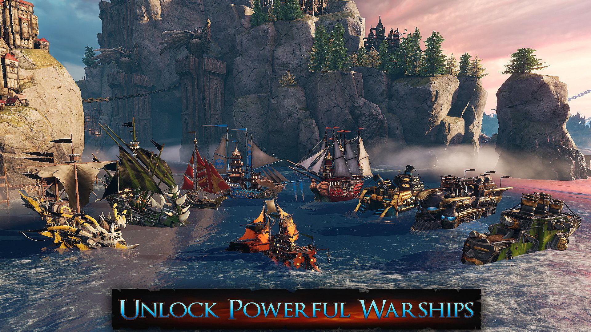Grim fantasy combined with thunderous naval combat in a vibrant, monster-saturated world! Captain an Orc, Dwarf or Human warship and sail the turbulent Abyssal Ocean with online multiplayer, in free-for-all & team based matches.