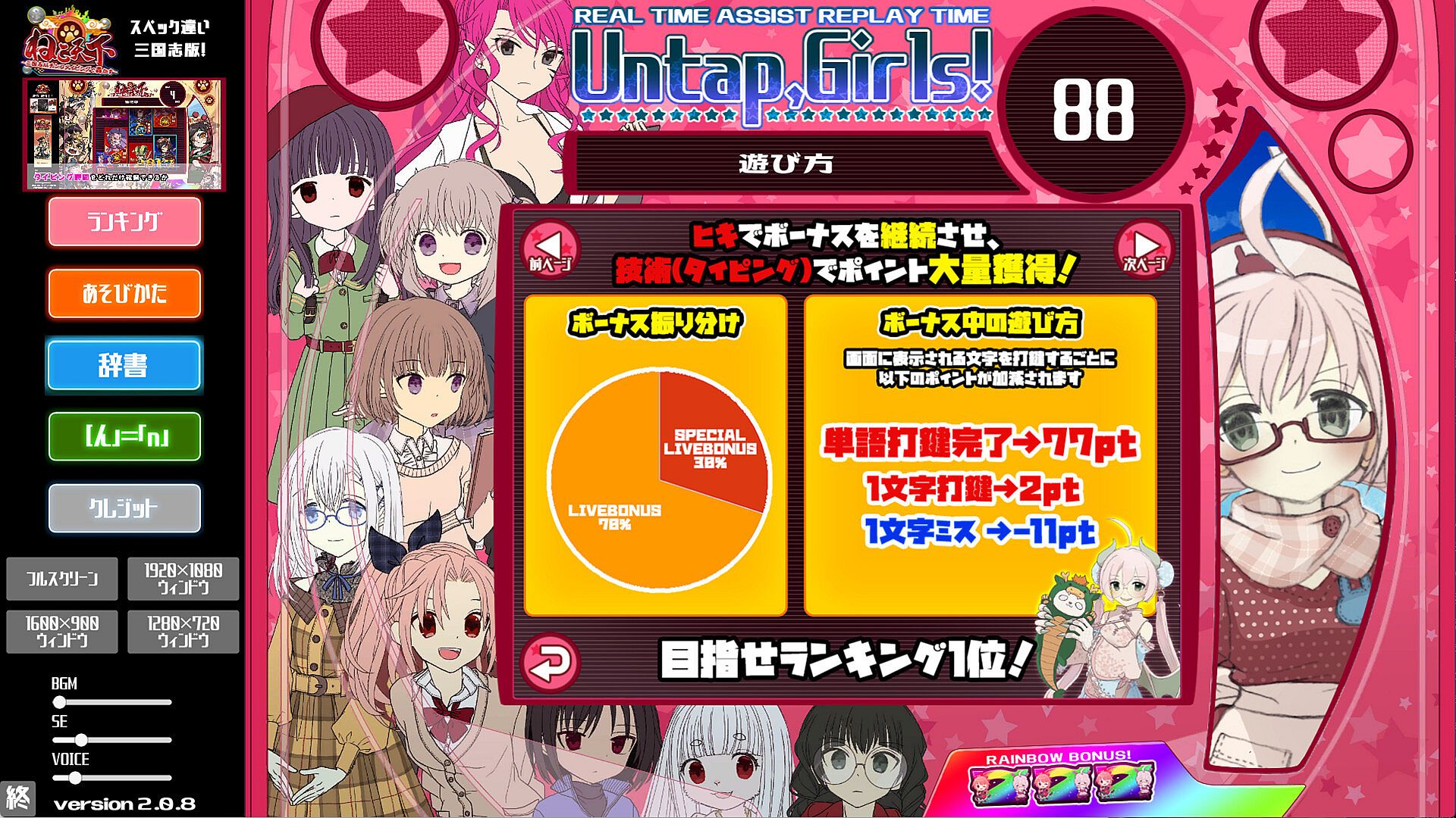Pachi-Pachi Typing is a game that combines the short-ST (Special Time) experience of pachinko with the score-attack style of a typing game.