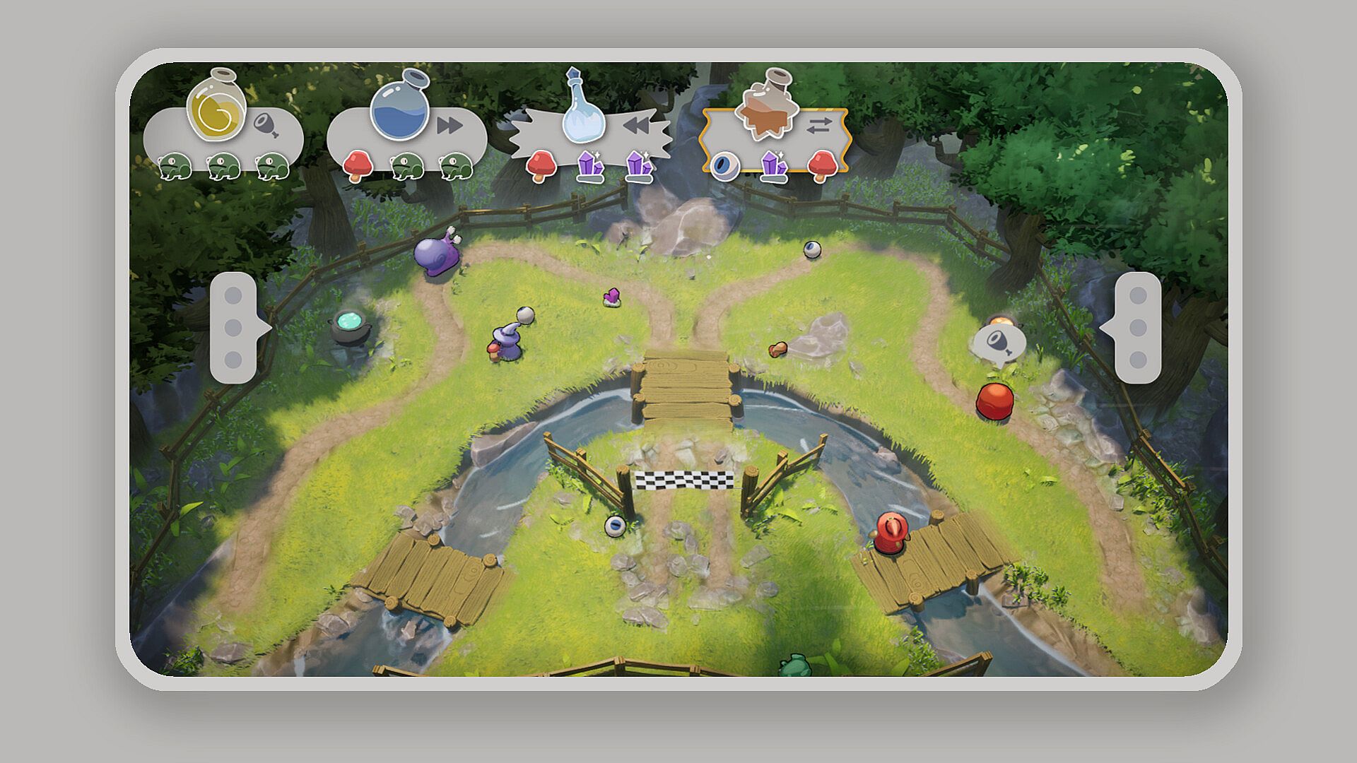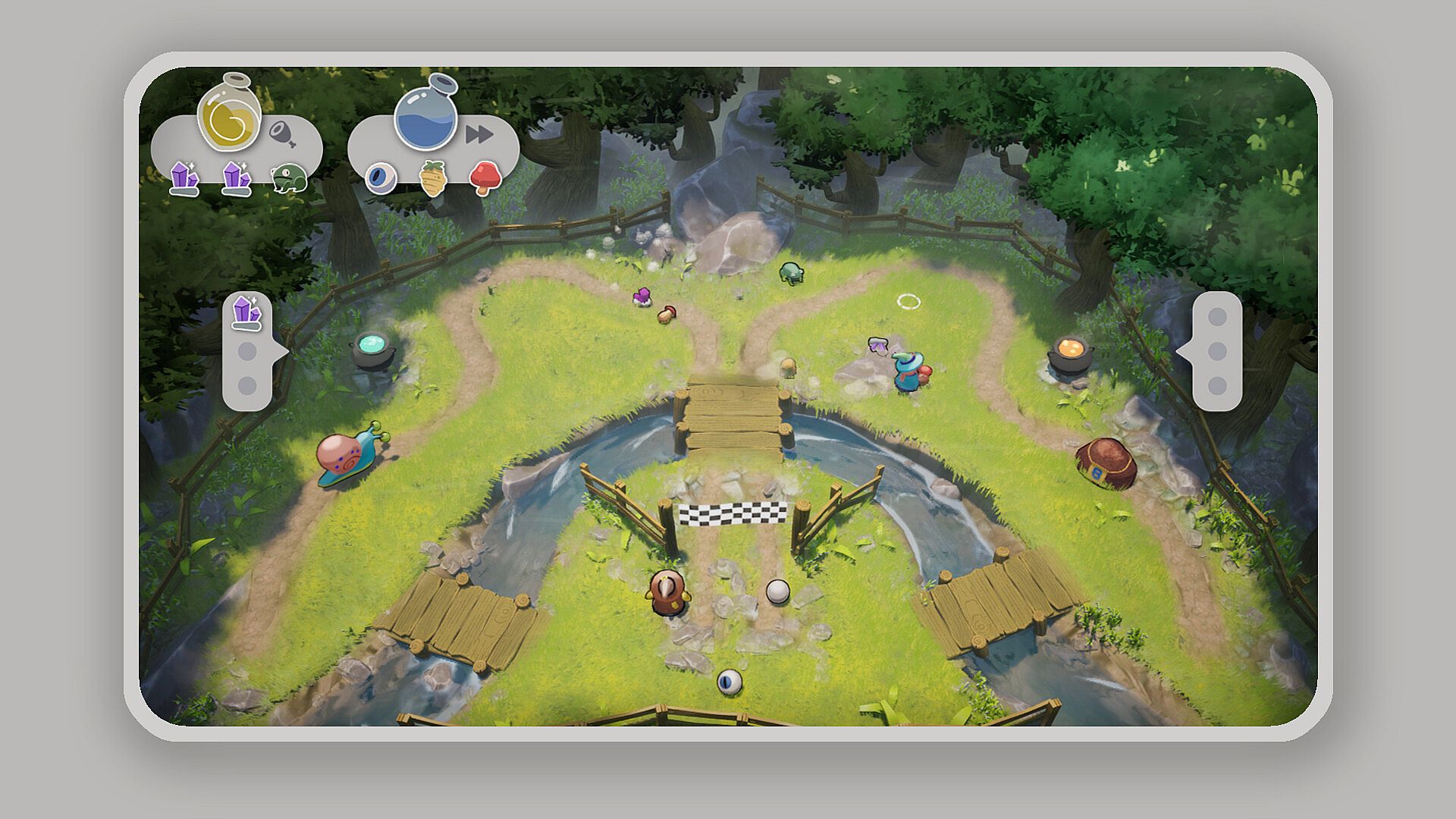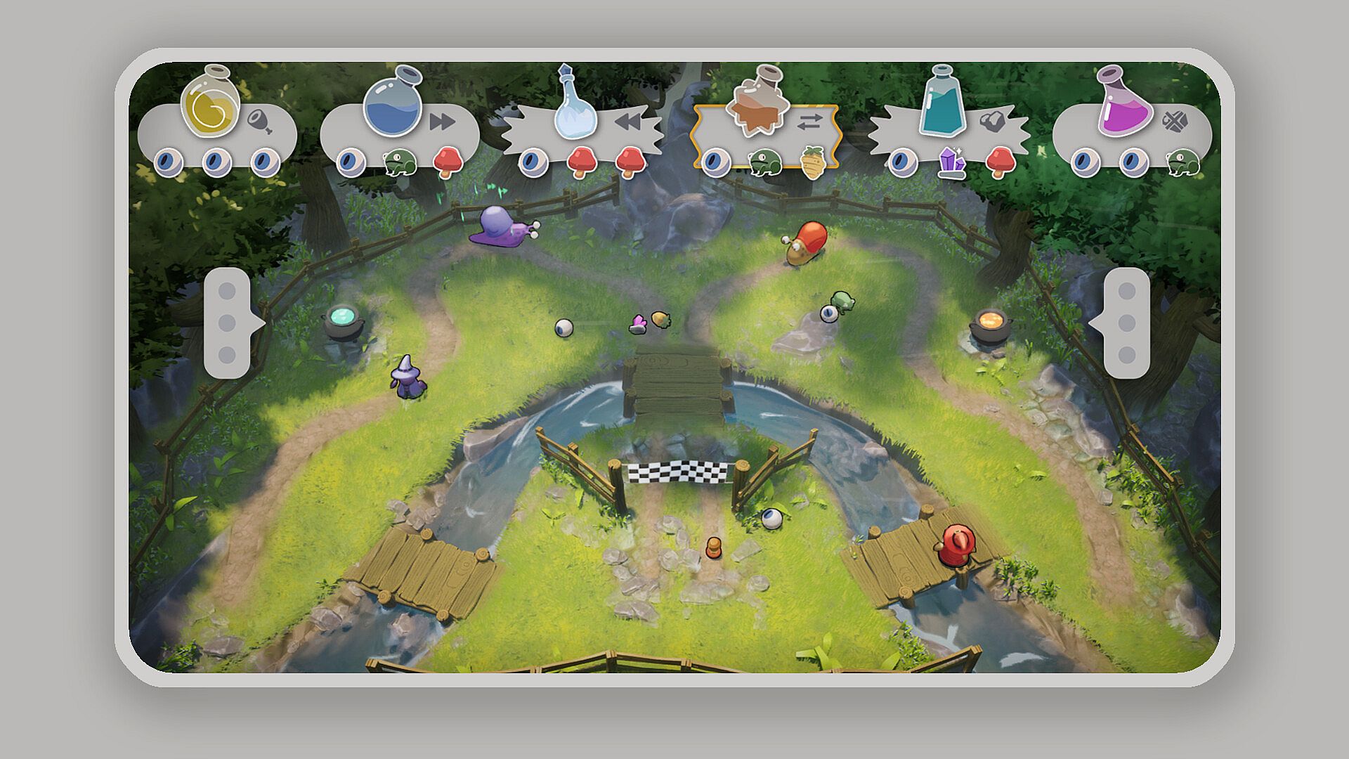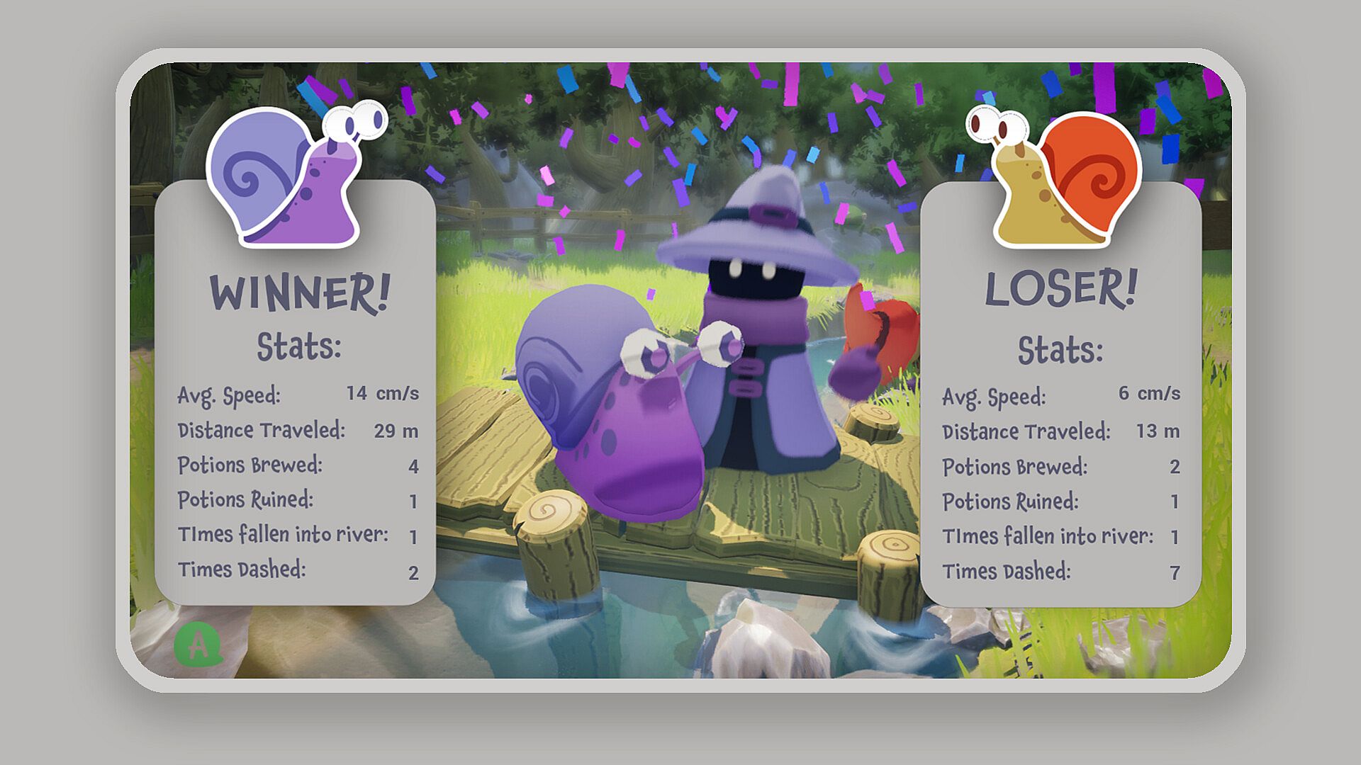 Snails & Potions is a fast paced party game, where you and one friend are tasked with getting your respective snail to the finish line. Forage items from around the map to brew potions. You can then use these potions to boost your snail, or perhaps sabotage your opponents snail. There are no rules, so employ whatever tactic you think will help you win.