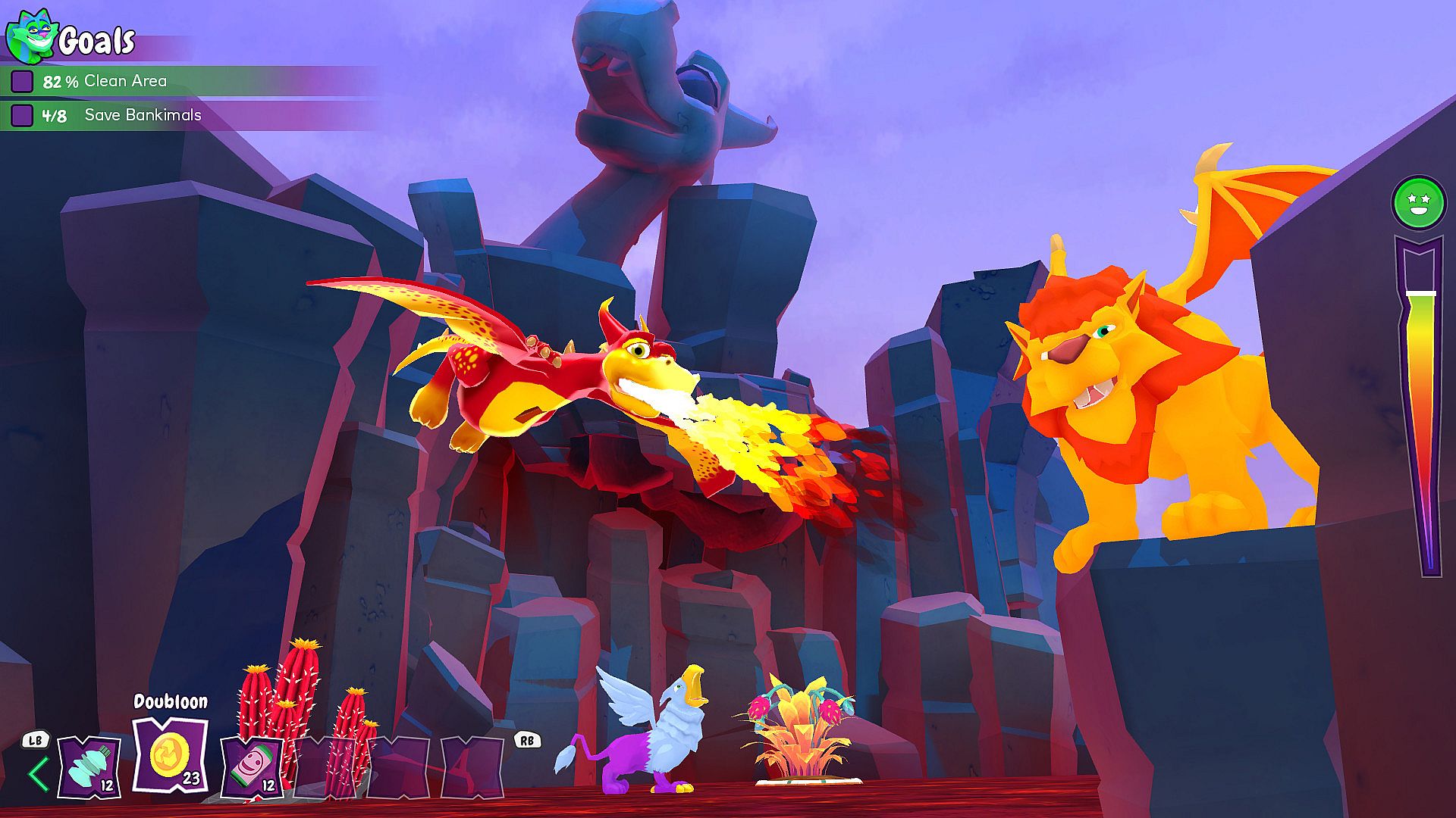 Suit up as a Bionaut in this action adventure on Floating Islands filled with mythical creatures. Blast away trash to rescue 14 bankimals like minotaurs, dragons, and unicorns. Glide on dragons and ride magical unicorns while collecting golden eggs to plant a giant beanstalk. Help Rainbow Cat revive the smoothie business with smart money moves. Players tackle these hands-on tasks in a mythical world. This game suits fans of creature-saving action adventures on PC.