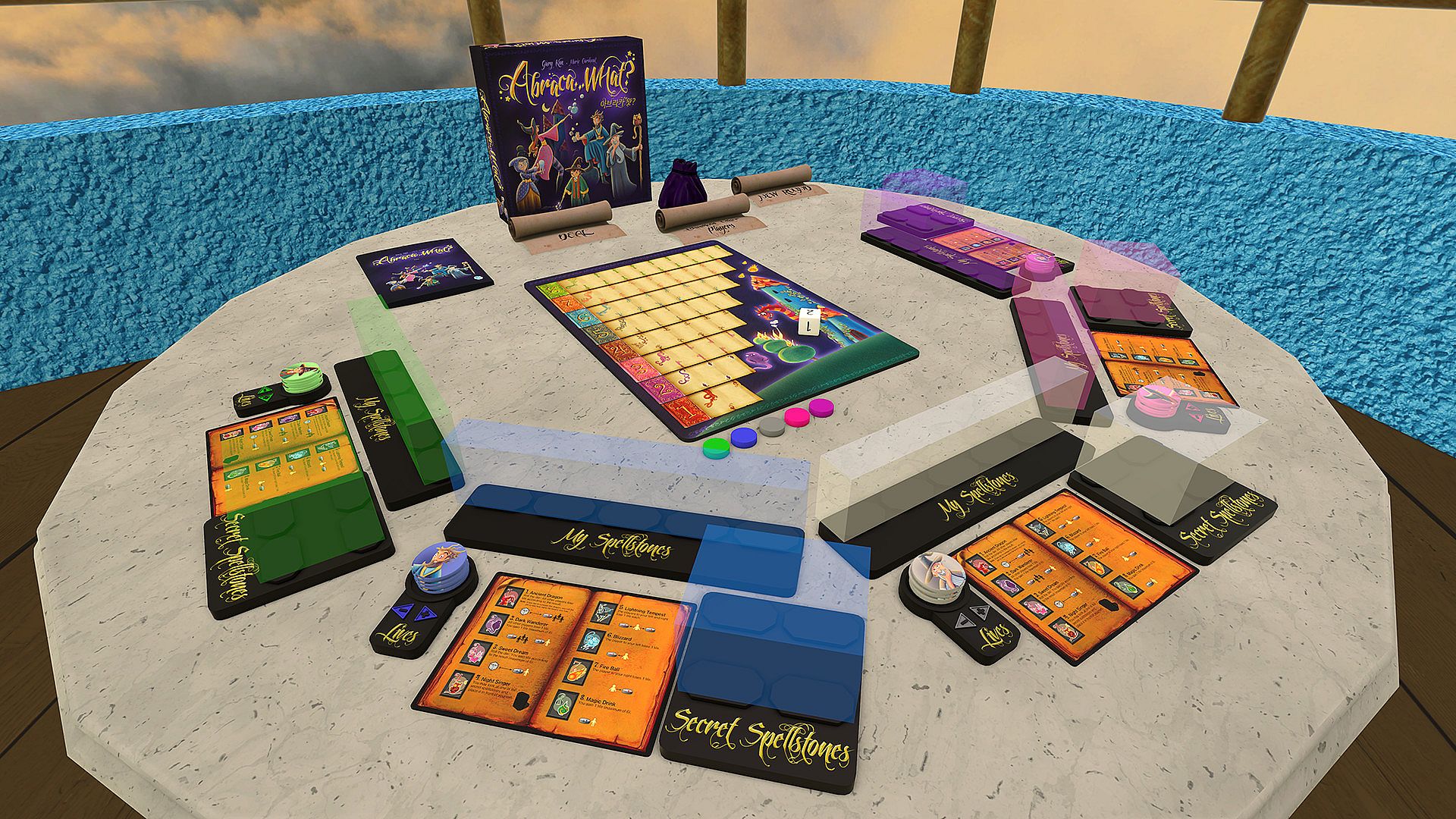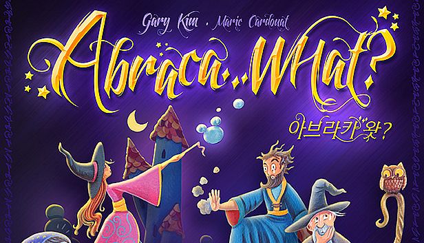 Abraca... What? by GARYKIMGAMES and published by Korea Boardgames is a family game of deduction and spellcasting. On your turn, you try to cast one of the spells you have in front of you — but it's harder than it looks because only the other players can see which spells are available to you! So with cunning wit, clever logic, and a little luck, you have to determine which spells to use against your competitors. Watch your magic words, though, because if you try to cast the wrong spell too often, you'll lose the game!