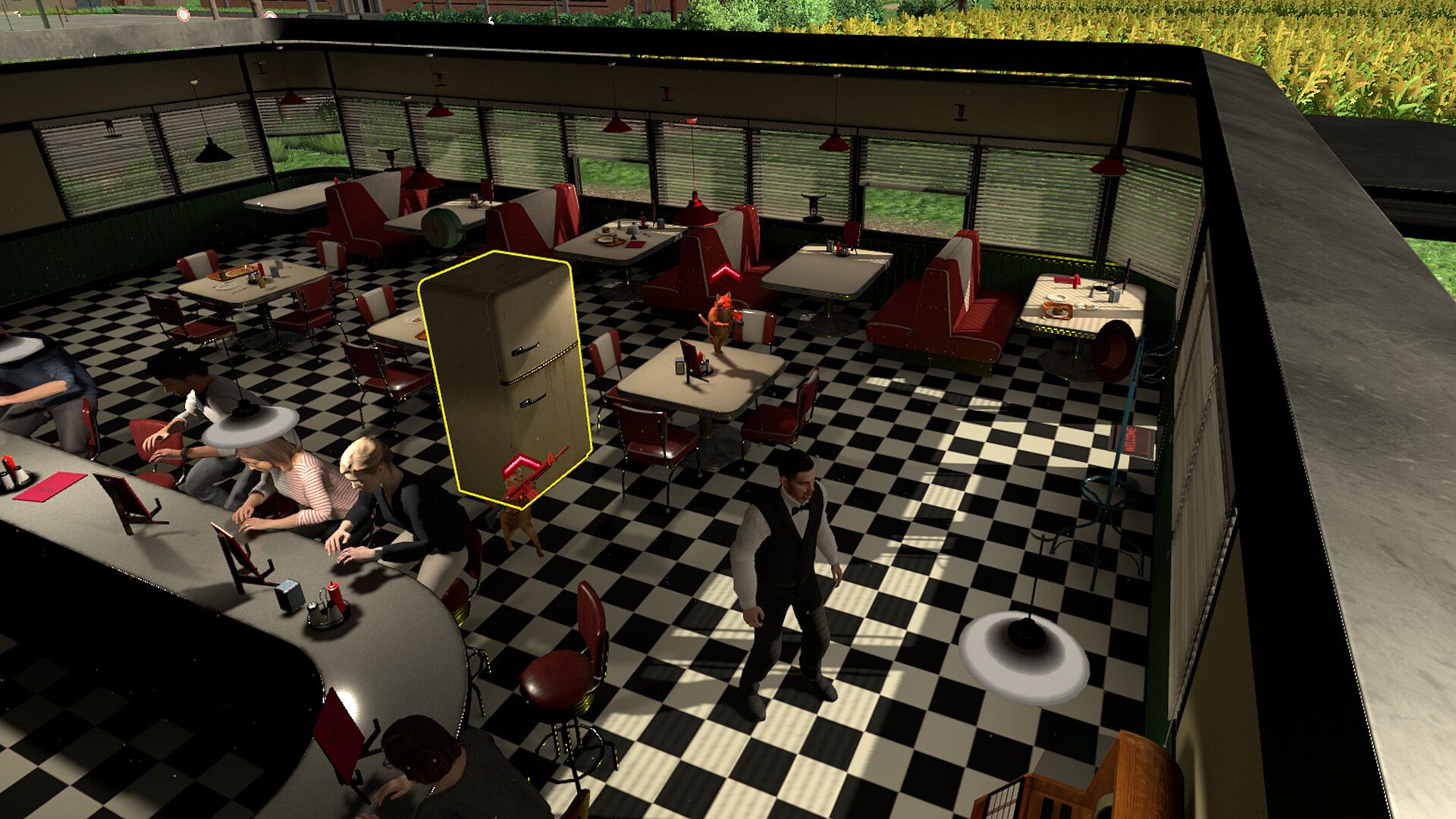 At the same time, don't let the customers go thirsty. Deliver coffee and make money. Satisfy customers and murder bugs to buy cards, build refrigerators, blow up stoves, and upgrade towers to crush this menace to society. How long can the player(s) keep the customers alive... and paying?