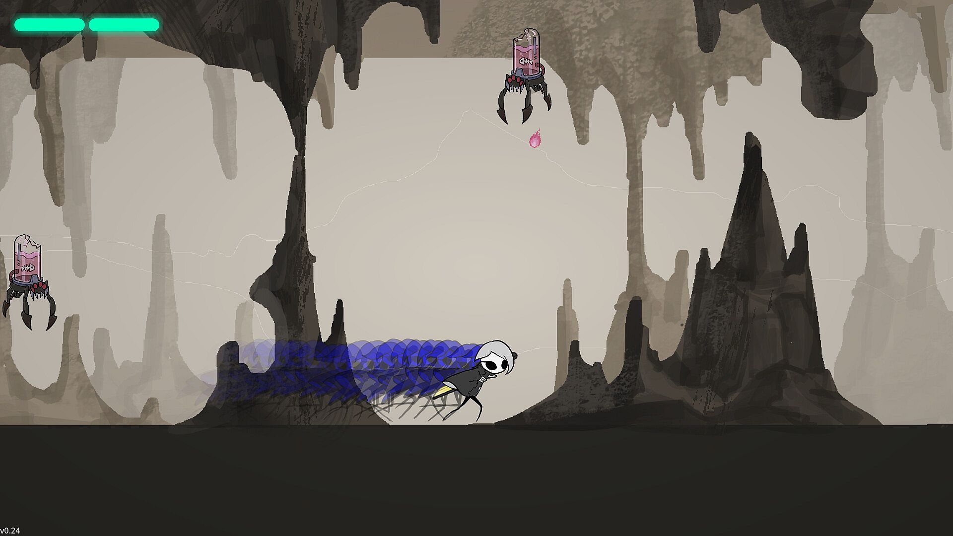Players have 5 health bars, and each time they take damage, hallucinations intensify, leaving afterimages along the character's movement path.