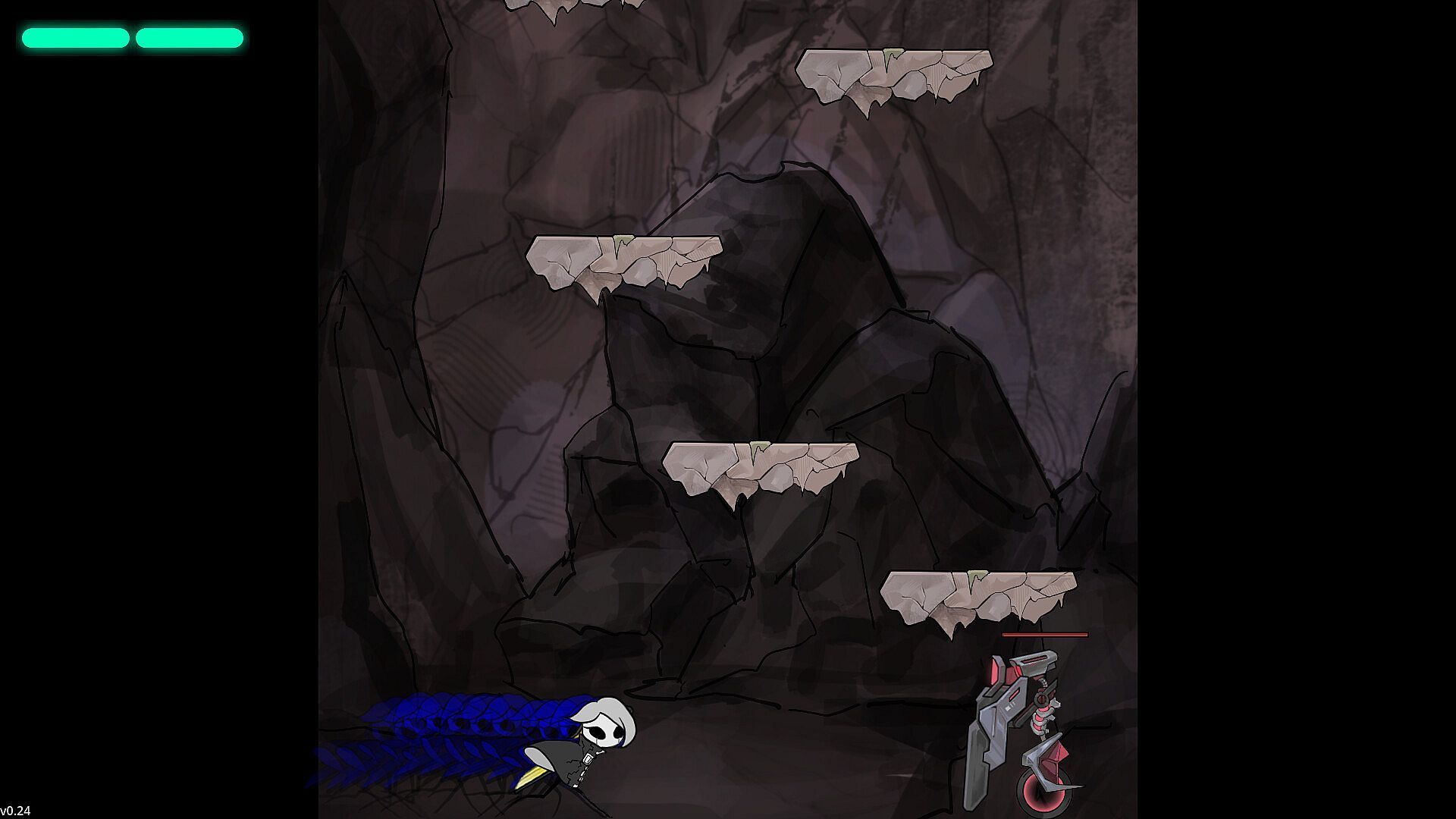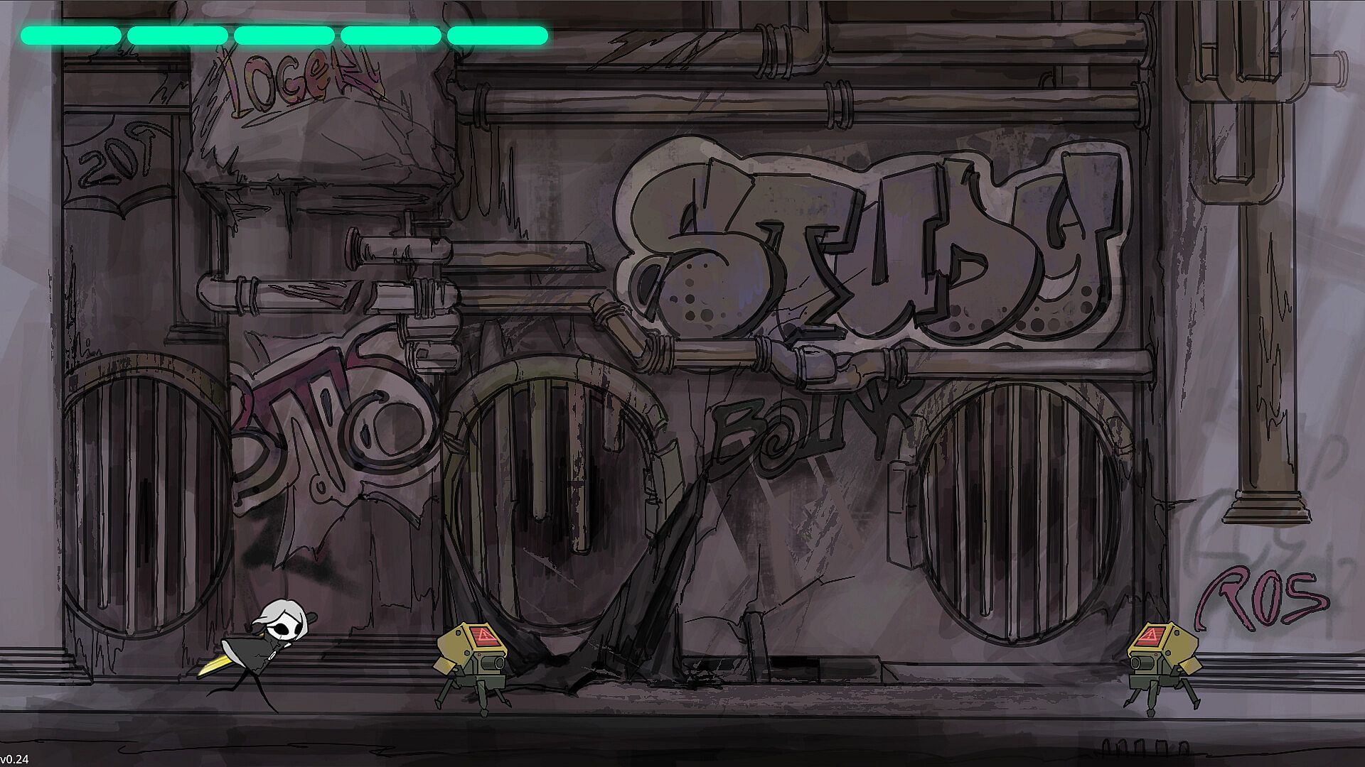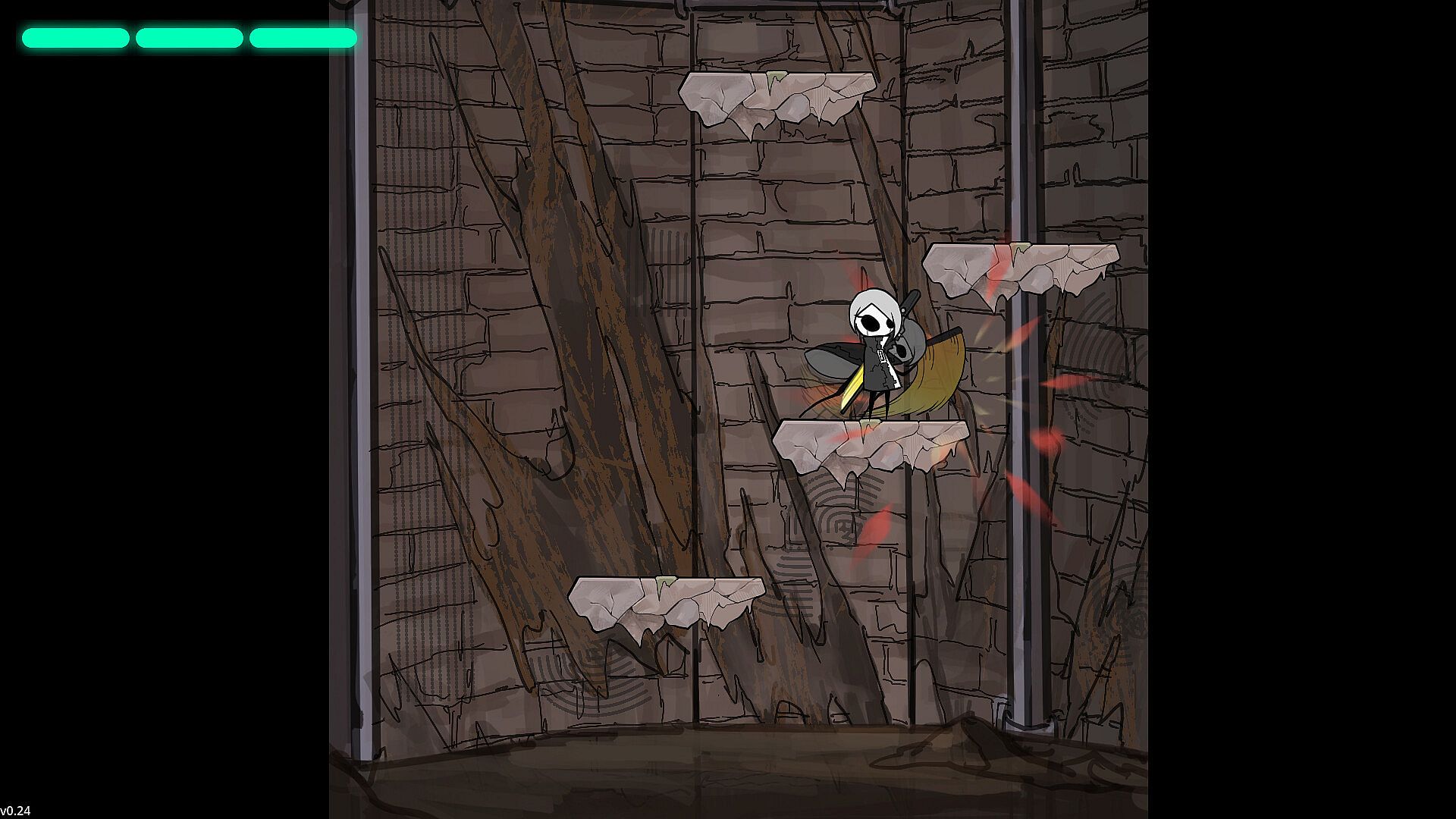 The character is fully equipped with abilities right from the start: attack, jump, dash, and bullet time.