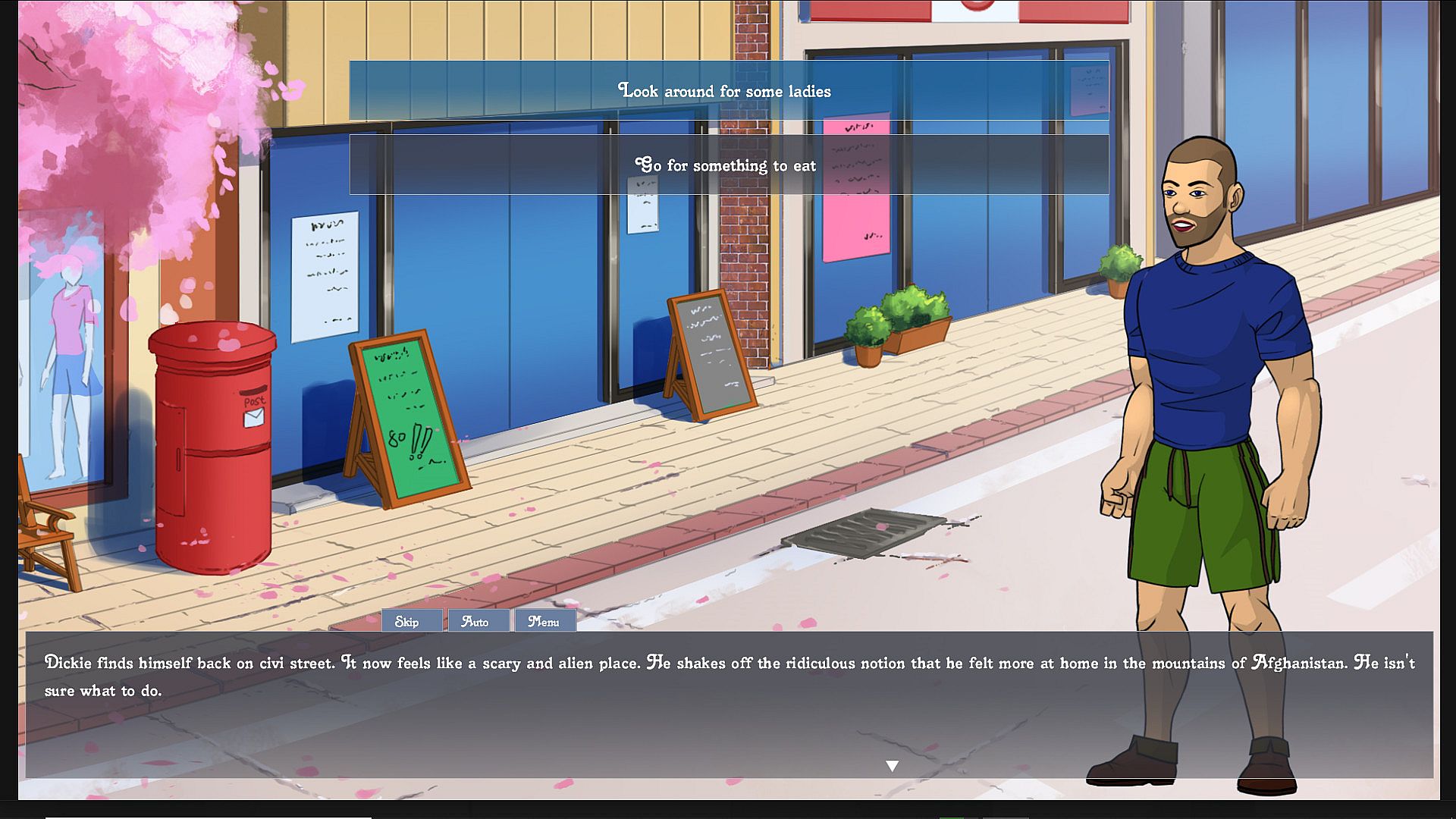 In this star-studded third-person interactive visual novel, you play Dickie A. Cumming; a decorated war hero who has recently been discharged from the British army. As Dickie, you must come to terms with a new life on 'civi street' and a brave new world of 'wokeness', 'social justice warriors' and 'cancel culture'.