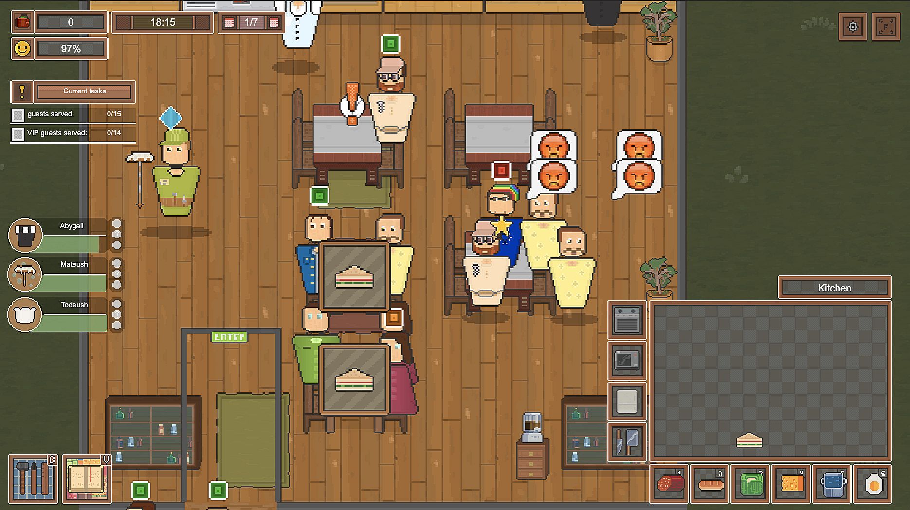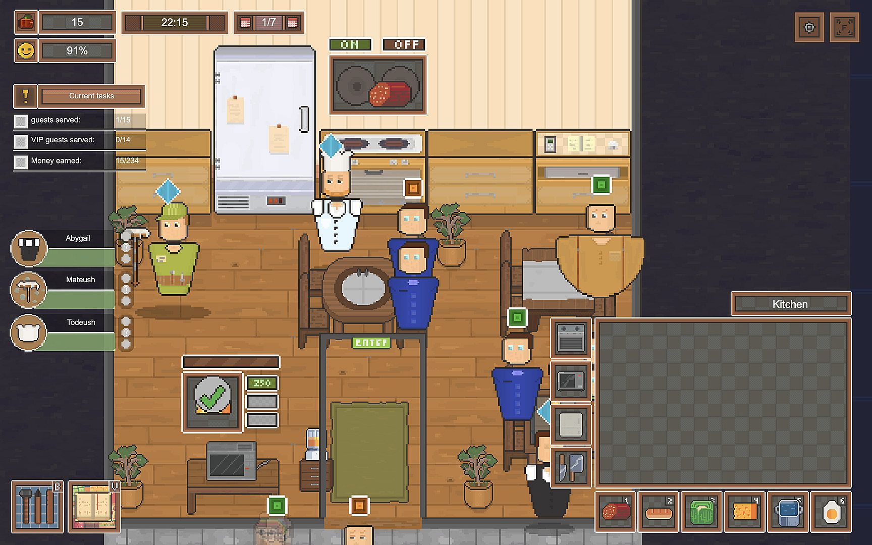 • Employees. Hire new employees, develop their skills and take them with you to the illegal disassembly of the restaurant mafia.