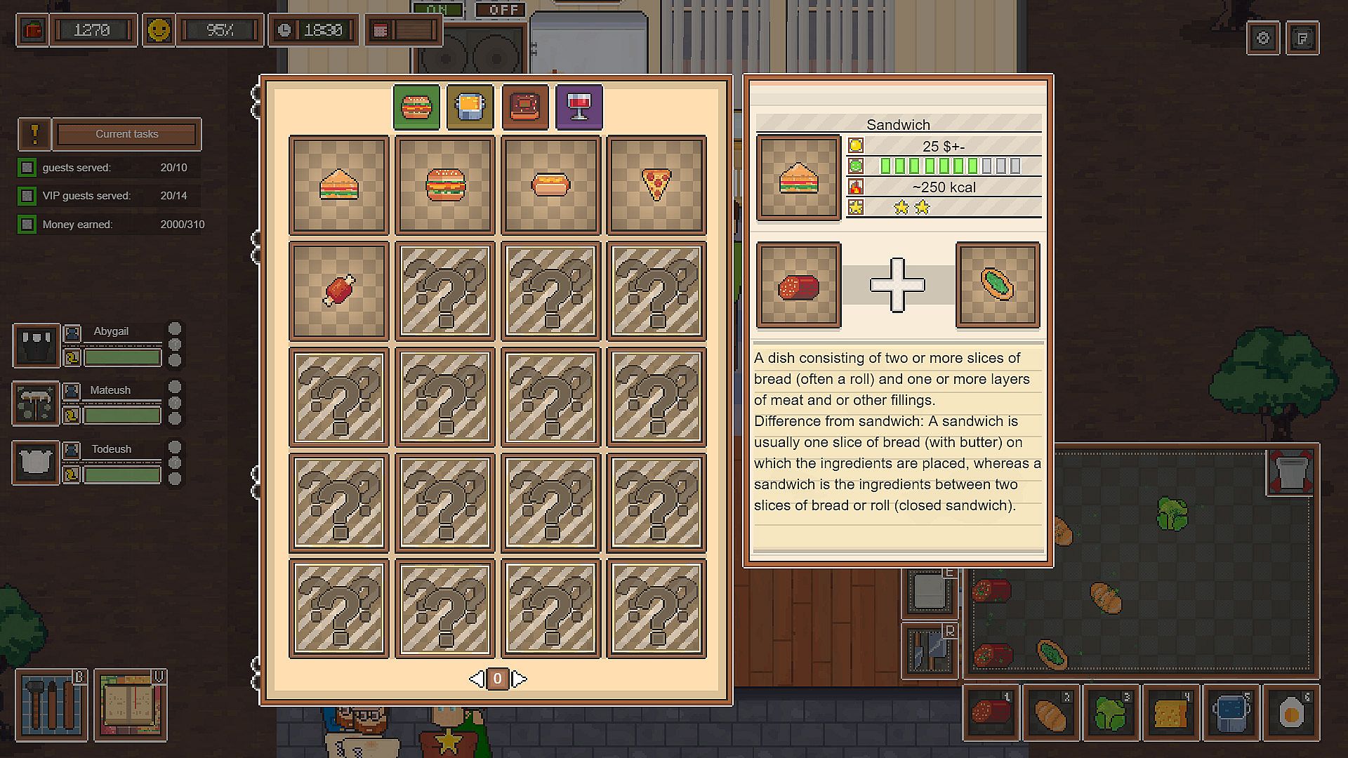 • Construction and purchase. Build your own restaurant or work as an employee. Buy equipment, upgrade it, attend sales and follow the latest trends.