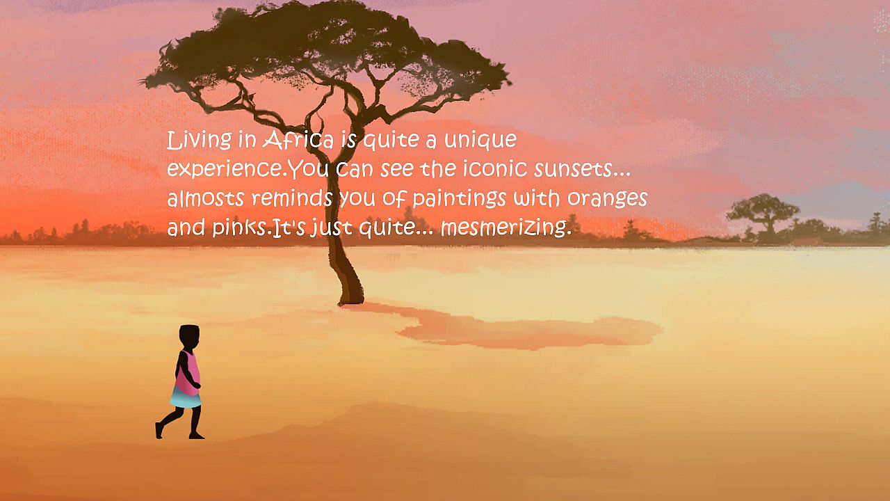 Helana, project lead, spent her formative years in Africa. During the game she describes her first hand experiences as the game draws out towards its tragic end for Savana.